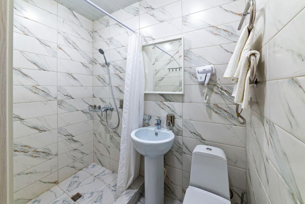 1-2 человека от 1 600 руб./сутки. Двухспальная кровать. Душ и туалет в комнате. Мини-холодильник, чайник, посуда и СВЧ. Телевизор и Wi-Fi. Полотенца, одноразовые тапочки.