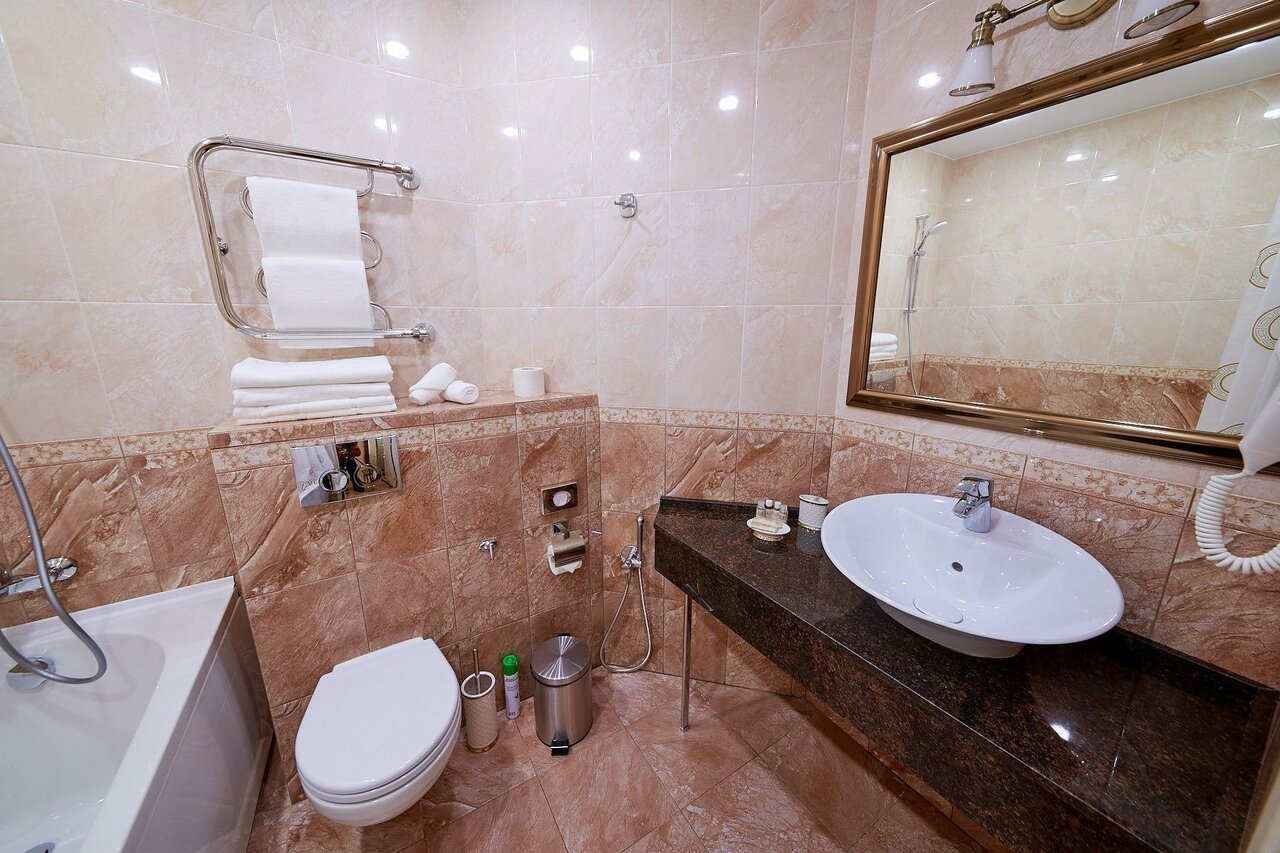 Уютные и просторные номера с большой кроватью ( или двумя раздельными кроватями) и диваном с видом на город. Собственная ванная комната с ванной и душем. Халаты, тапочки, гигиенические принадлежности включены в стоимость номера. Идеально для семейн