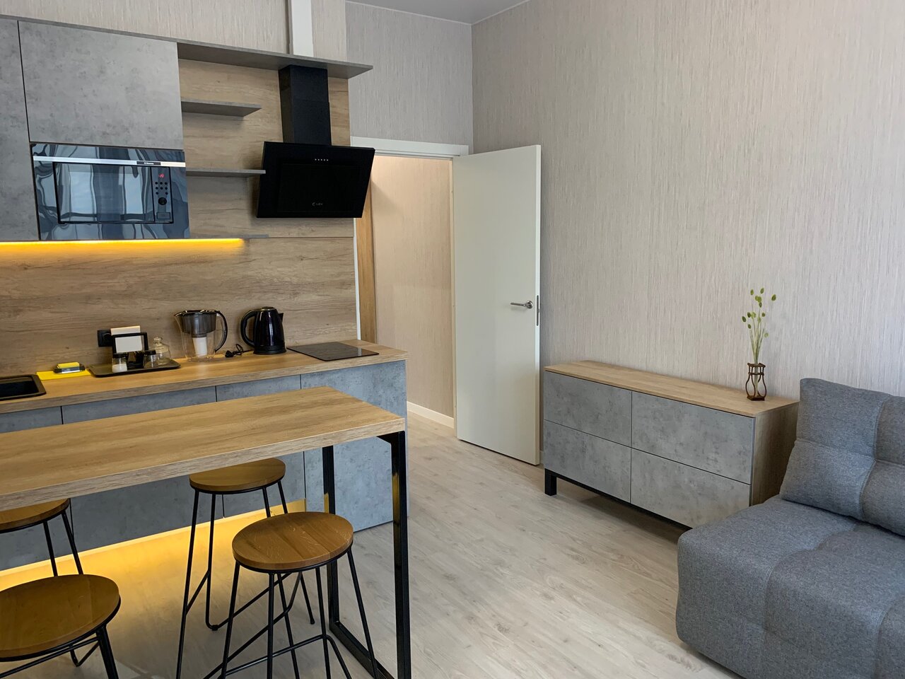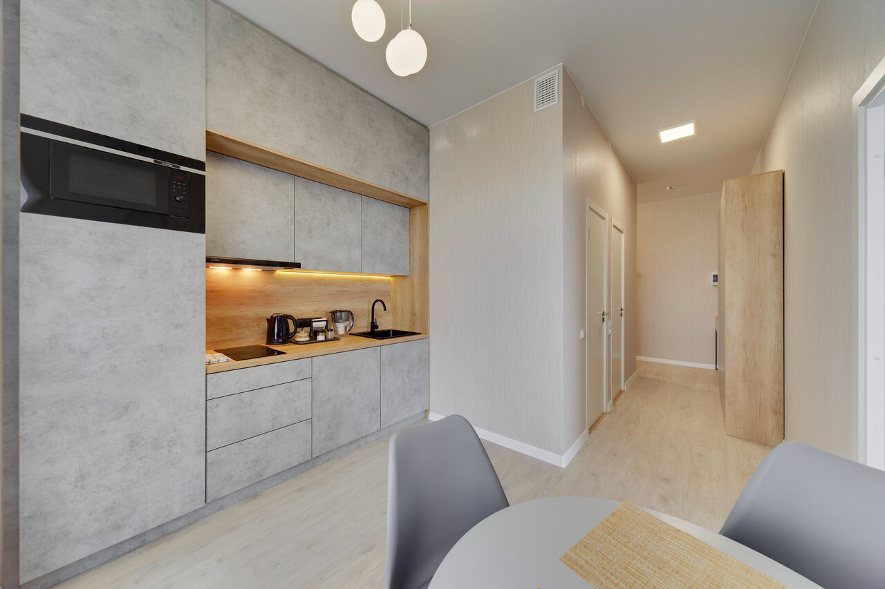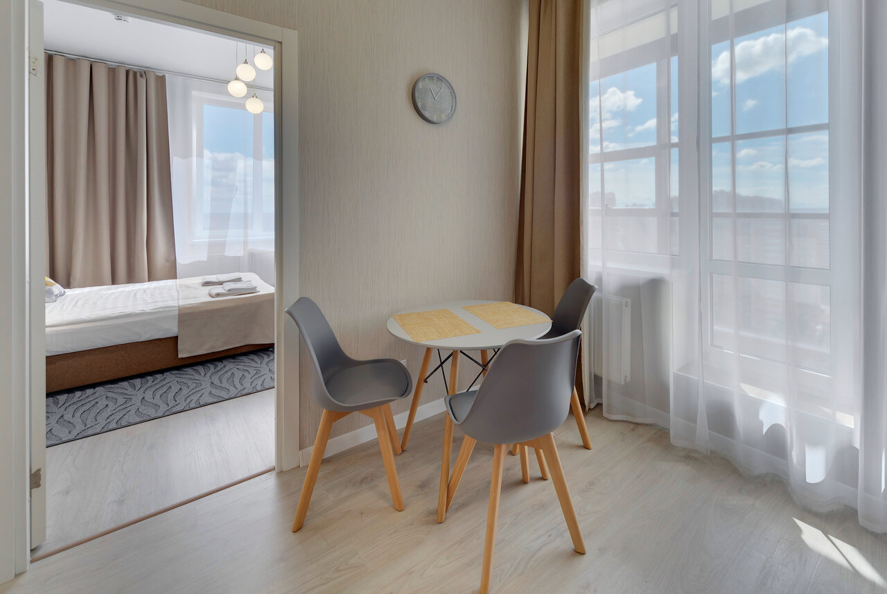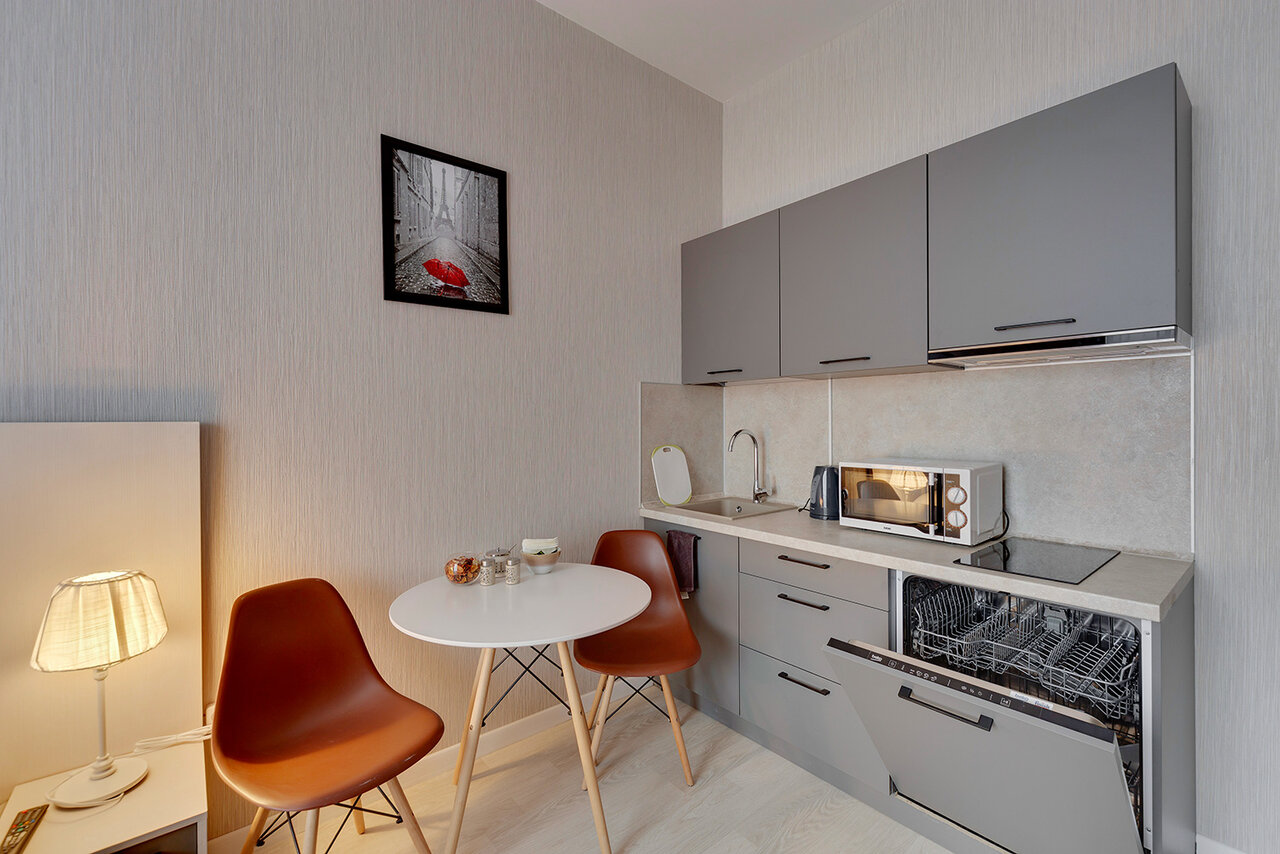 Для тех, кто предпочитает максимум, не переплачивая. Эргономичные апартаменты общей площадью 24 кв. м. Вместимость 2-3 человека.