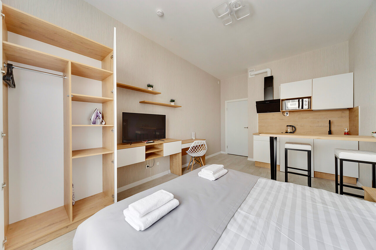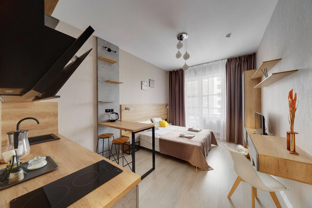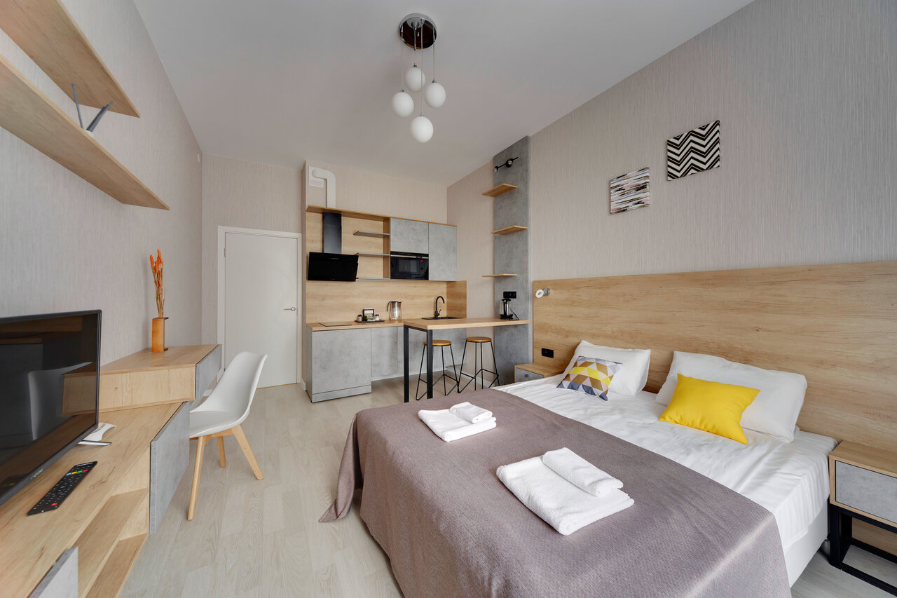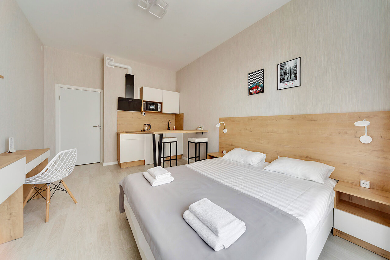 Стандартная студия. До метро долековато. Шум шоссе рядом 24/7. Постельное бельё после стирки не полоскали, чтоб его поменяли надо напоминать 4-5 раз. Это не гостиница, а аппарт-отель. Работают ‘в серую’.