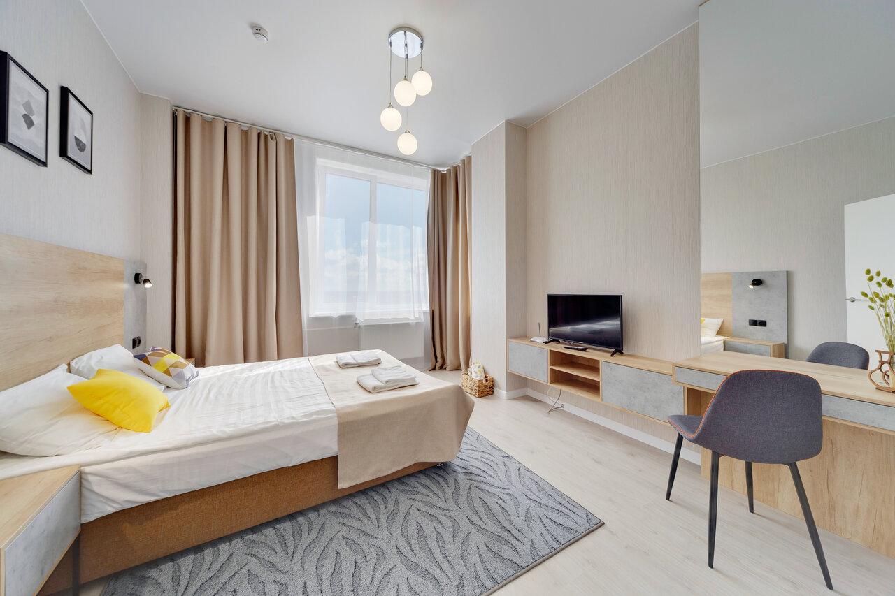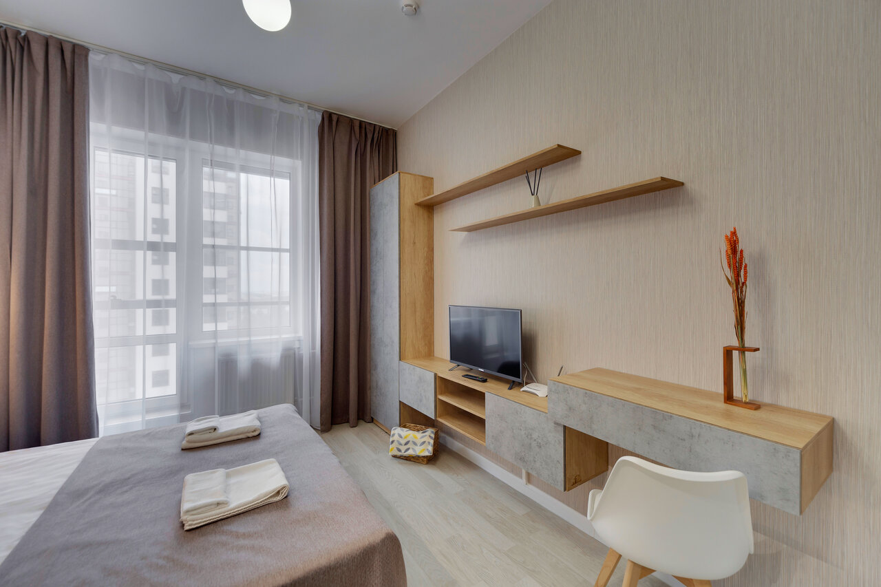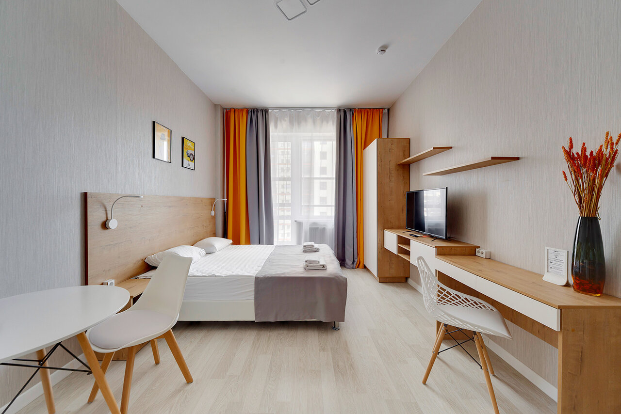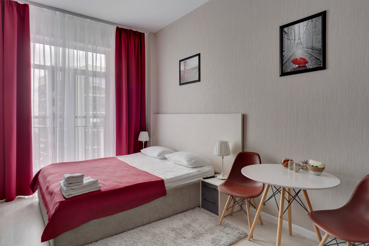 Стандартная студия. До метро долековато. Шум шоссе рядом 24/7. Постельное бельё после стирки не полоскали, чтоб его поменяли надо напоминать 4-5 раз. Это не гостиница, а аппарт-отель. Работают ‘в серую’.