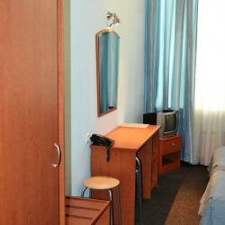 В номере уютно,есть все необходимое, постельное белье чистое .Единственное, окна выходят на проспект, очень шумно,и не помешало бы их помыть и постирать шторы.В остальном,нас все устроило.