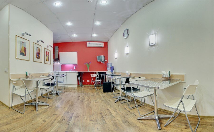 Хорошее расположение близко к метро и центру, номера с собственным душем, общая кухня на этаже, есть вода (кулер). Очень большая слышимость соседних номеров.