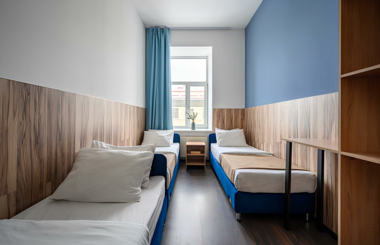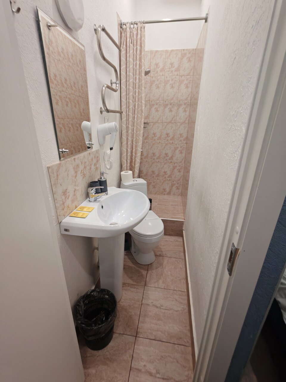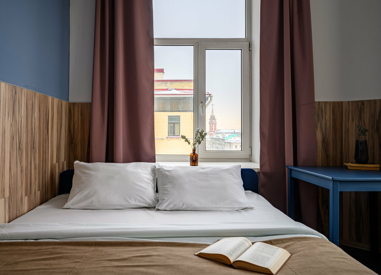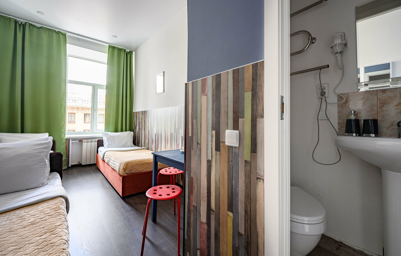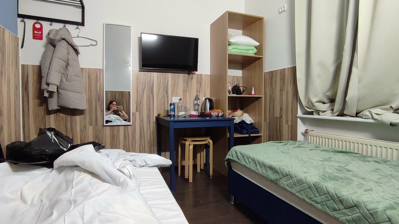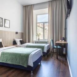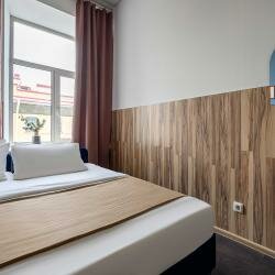 Бюджетный вариант гостиницы в самом центре. У нас был номер с видом на Казанский собор и Невский проспект — шик особенно ночью. В шаговой доступности все главные достопримечательности, много кафе, где можно перекусить. В номере скромно, но чисто. Есть тв, душ и туалет (чистые, но очень компактные), на этаже есть дополнительные душевые и туалеты. В номерах есть одноразовые тапочки. Есть камеры хранения, бесплатно можно разместить чемоданы. Постельное чистое, свежее. С кроватями нам не повезло, одна сильно скрипела, на второй был не очень удобный матрас. Неплохой вариант для того, чтобы просто приходить переночевать.