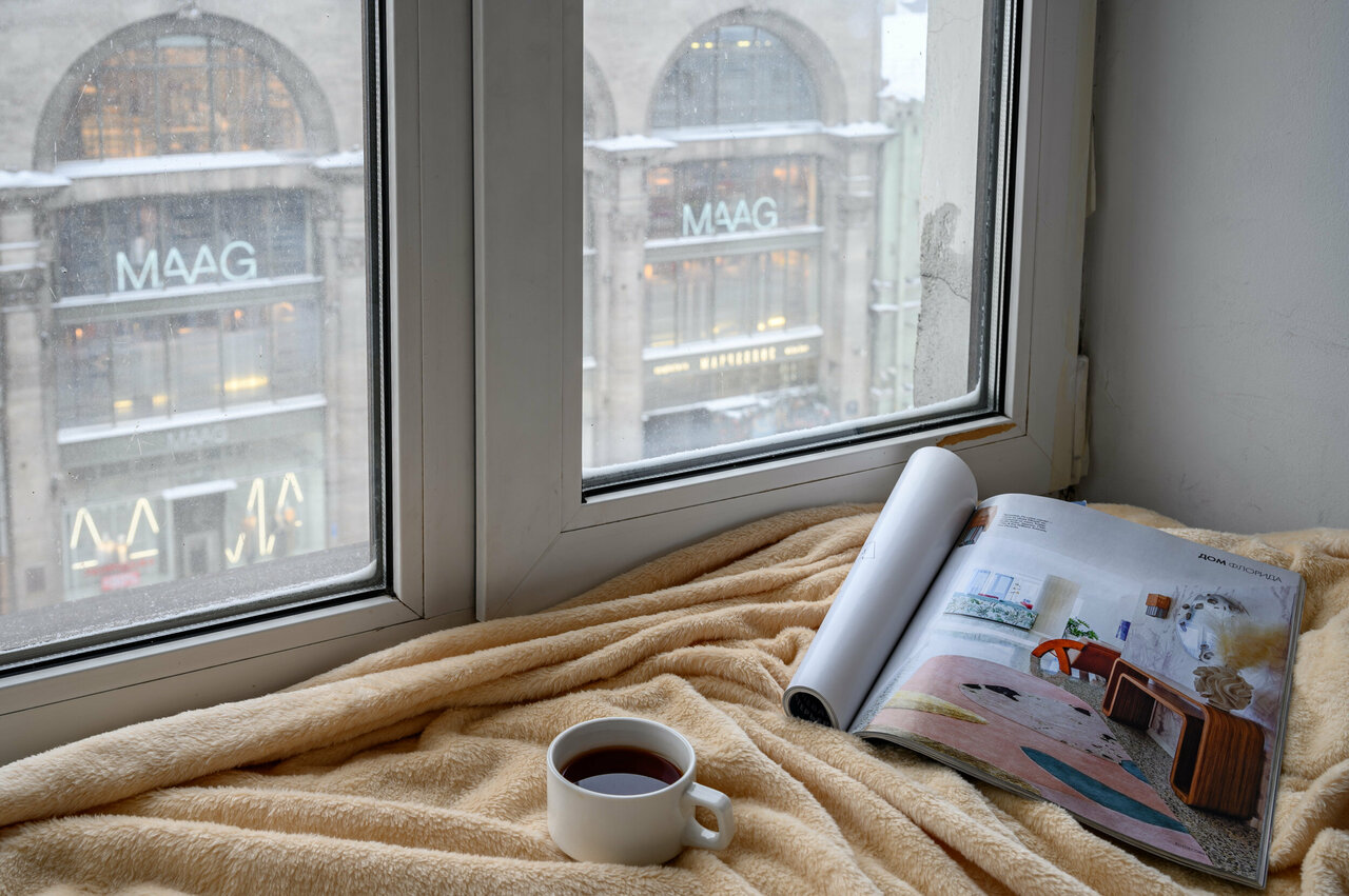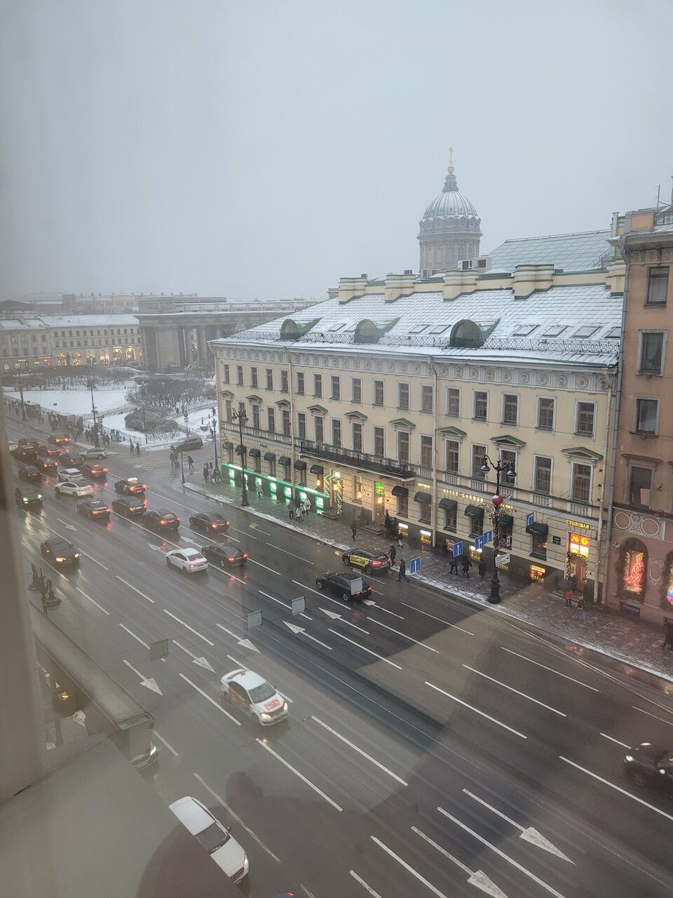 Зимой холодно от окон, что выходят на Невский, что и является большим плбсом маленького отеля и маленького номера.