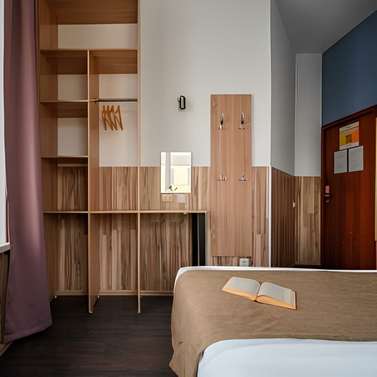 Удобства включают камеру хранения, фен, утюг, лифт и круглосуточную стойку регистрации. Питание не предусмотрено, но рядом есть автоматы со снэками. Отель находится в пешей доступности от центра (до 1 км) и парка.