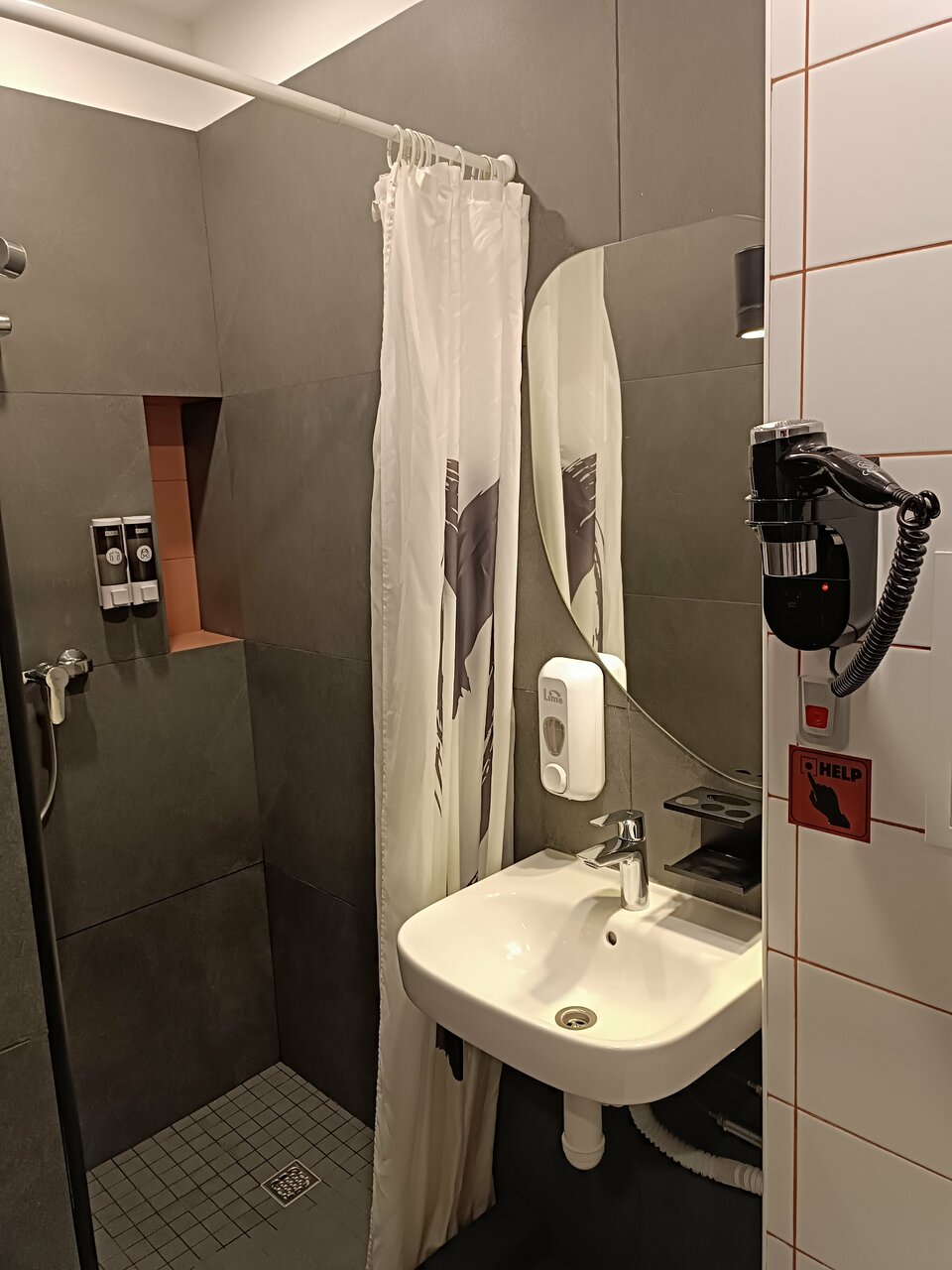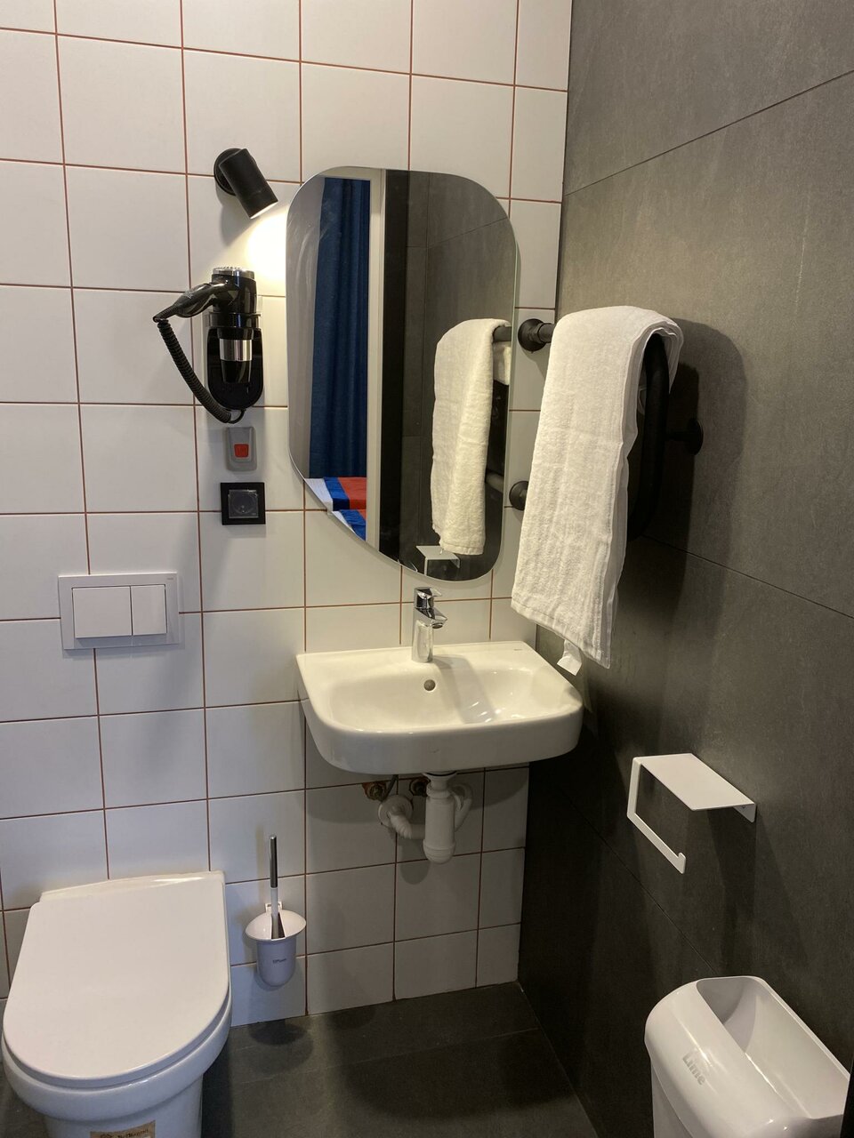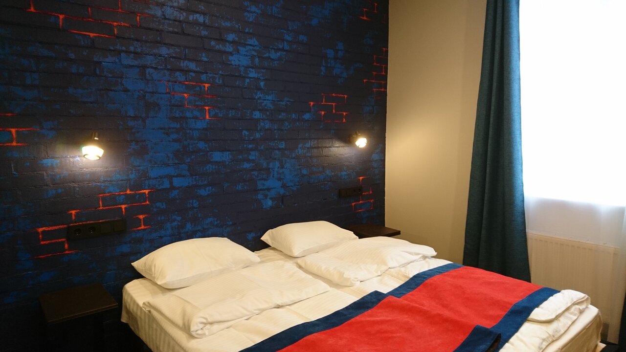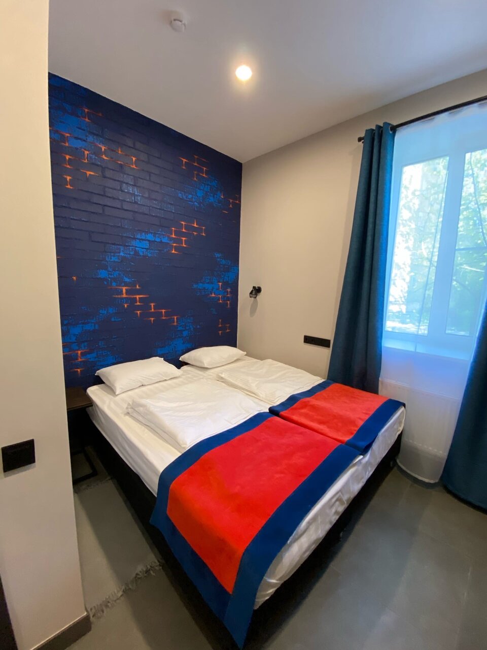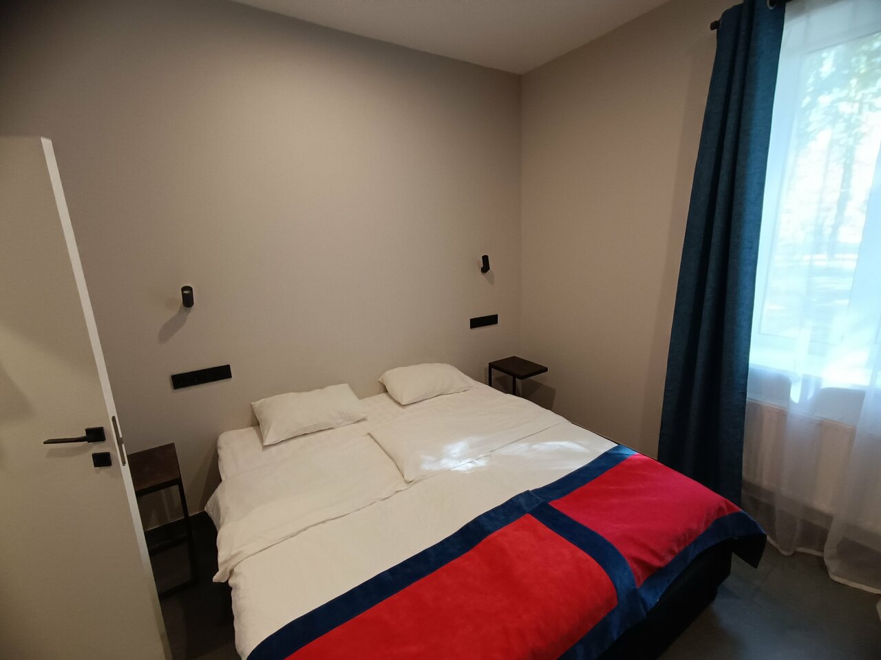 Отель расположен в 20 мин от метро Ломоносовская, пешком далеко, до центра города 3 остановки-20 мин. На машине удобно, можно припарковаться на улице перед отелем. Есть комната со стиральными машинами, гладильной доской, напольной сушкой. Номер достался стандартный с отдельными кроватями маленький около 7 кВ м. На рекламном ролике для животных явно больше. Матрасы хорошие, уборка ежедневно, но под кроватью толстый слой пыли. На заметку управляющему, надо контролировать. Нет холодильника и прикроватных полок, тумбочка даже и не войдет. Все современное, чистое. Есть чайник, чашки, напольный вентилятор, фен. Хороший напор воды в душе, но перепутали при укладке плитки наклон пола, слив плохой, стоишь в воде принимая душ, Скрип от жд слышно, но не просыпались , хотя спали с открытым окном. Администраторы очень приятные. Места общего пользования уютные. Поставила 4 из за замечаний описанных в тексте.