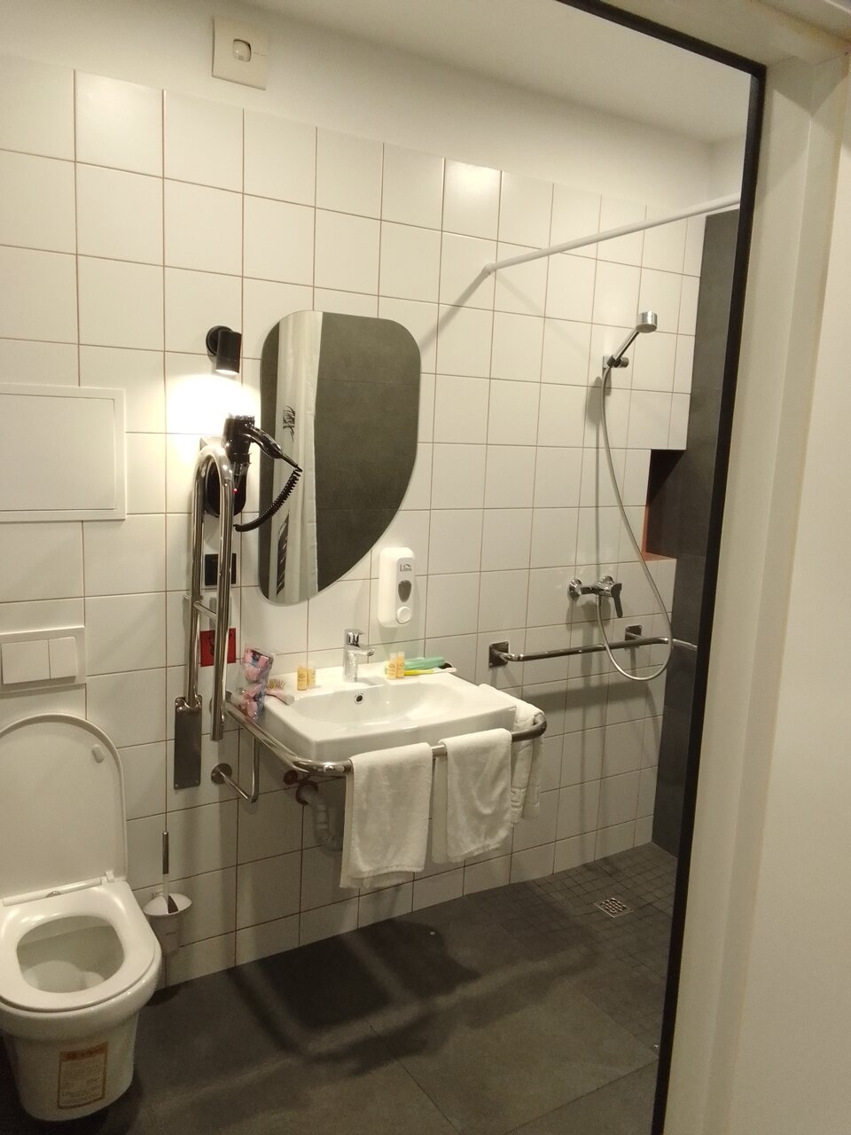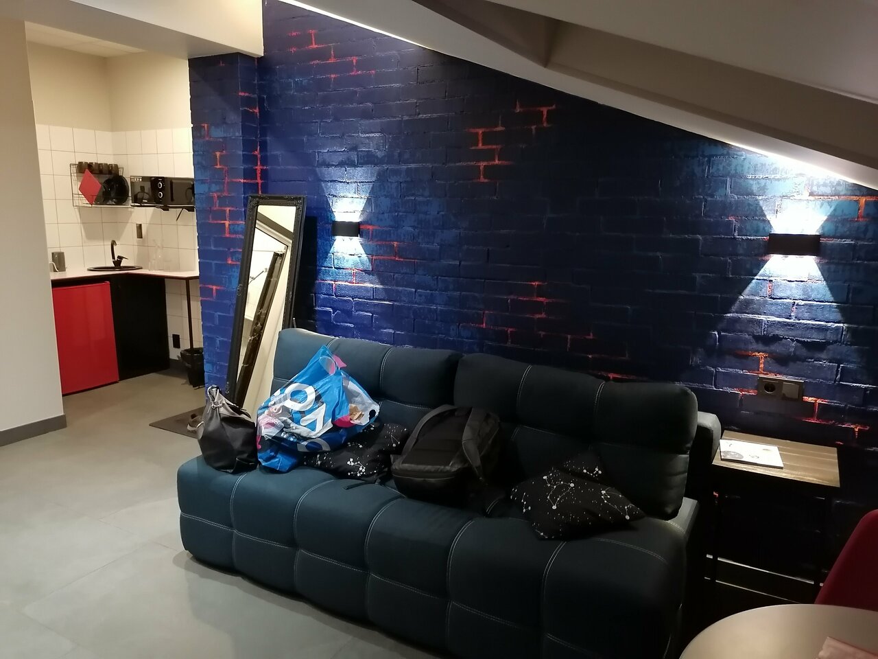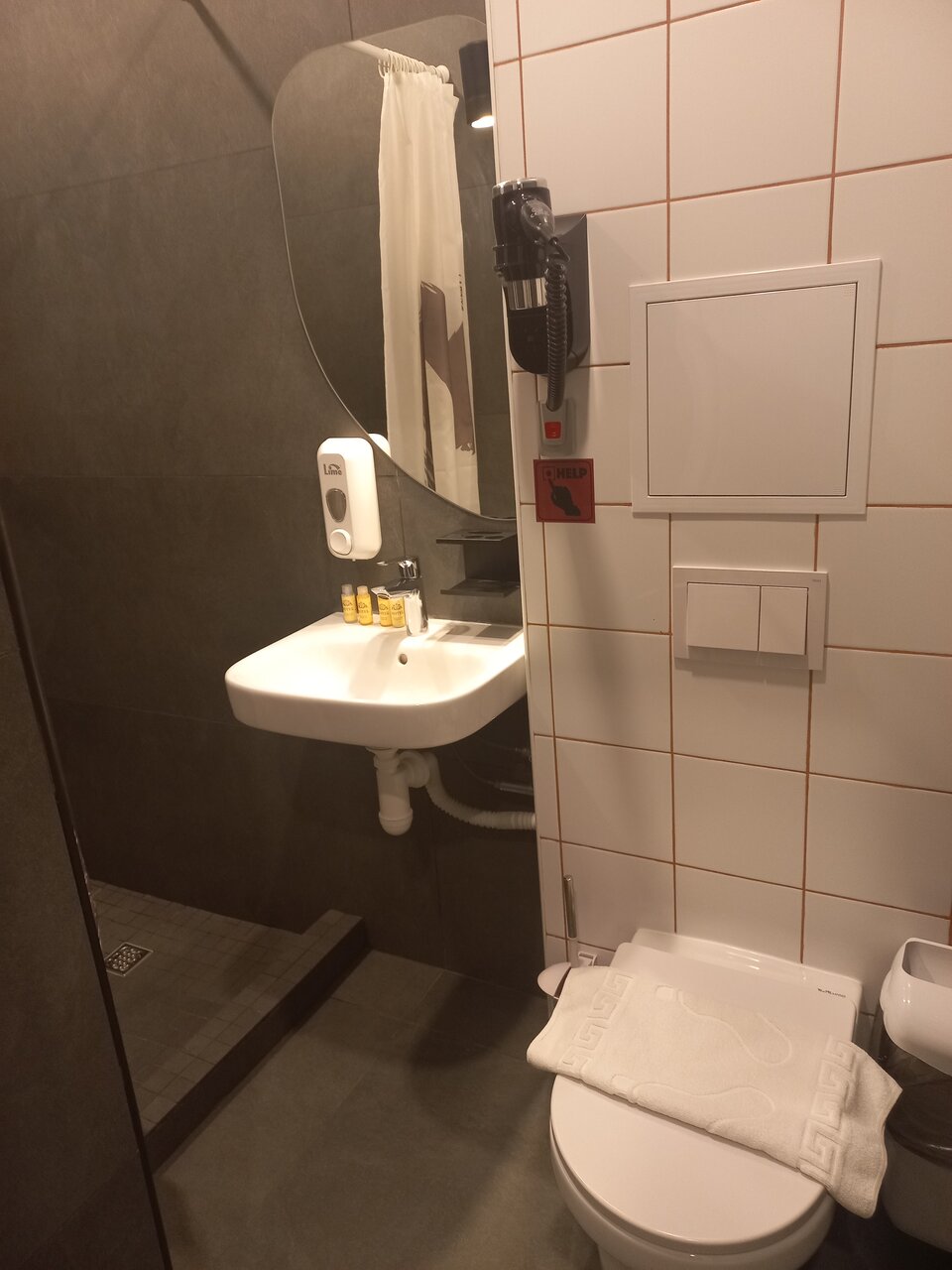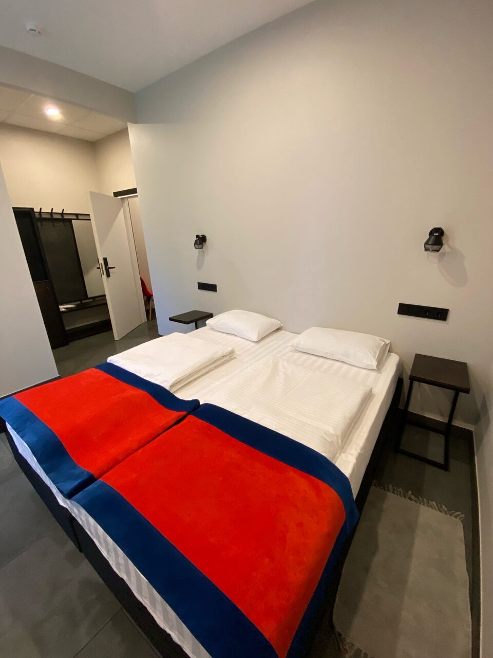 Отель расположен в 20 мин от метро Ломоносовская, пешком далеко, до центра города 3 остановки-20 мин. На машине удобно, можно припарковаться на улице перед отелем. Есть комната со стиральными машинами, гладильной доской, напольной сушкой. Номер достался стандартный с отдельными кроватями маленький около 7 кВ м. На рекламном ролике для животных явно больше. Матрасы хорошие, уборка ежедневно, но под кроватью толстый слой пыли. На заметку управляющему, надо контролировать. Нет холодильника и прикроватных полок, тумбочка даже и не войдет. Все современное, чистое. Есть чайник, чашки, напольный вентилятор, фен. Хороший напор воды в душе, но перепутали при укладке плитки наклон пола, слив плохой, стоишь в воде принимая душ, Скрип от жд слышно, но не просыпались , хотя спали с открытым окном. Администраторы очень приятные. Места общего пользования уютные. Поставила 4 из за замечаний описанных в тексте.