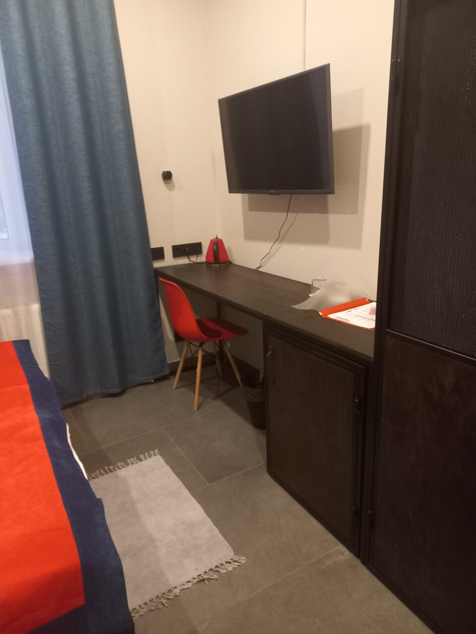 Отель просто замечательный. Вежливые и отзывчивые сотрудники. В номерах все чисто, аккуратно и свежо. Уборка в номере каждый день. Раз в три дня меняют постельное белье и полотенца. В душе есть жидкое мыло, шампунь, гель для душа, туалетная бумага. На 1 этаже возле бойлера есть чашки и бесплатно чай, кофе, сахар. На третьем этаже есть холодильник, плита, микроволновка и кухонные приборы. В номере есть телевизор много фильмов и различных каналов. Wi-fi работает хорошо. Ночью даже включали отопление. Рядом магазин ‘Пятёрочка’, шаурма, не далеко остановка, метро так же не далеко (в минут 10 ходьбы). Из минусов: в душе вода течет к умывальнику (если долго мыться;) ). Рядом путепровод от которого иногда шумно ночью, но мне это не мешало и я в первый день привыкла. Если в будущем будет намечаться поездка в Санкт-Петербурге, то я предпочту этот отель.;)