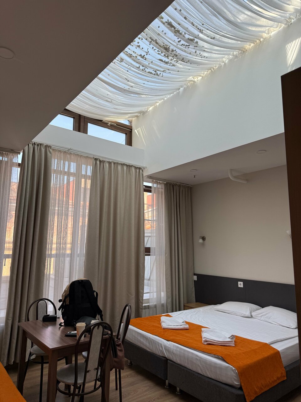 Хороший номер, были в ноябре, удобное место для ночевки, с радостью вернёмся еще раз. Находится недалеко от центра, но были проблемы с адресом, на карте отражалось другое место