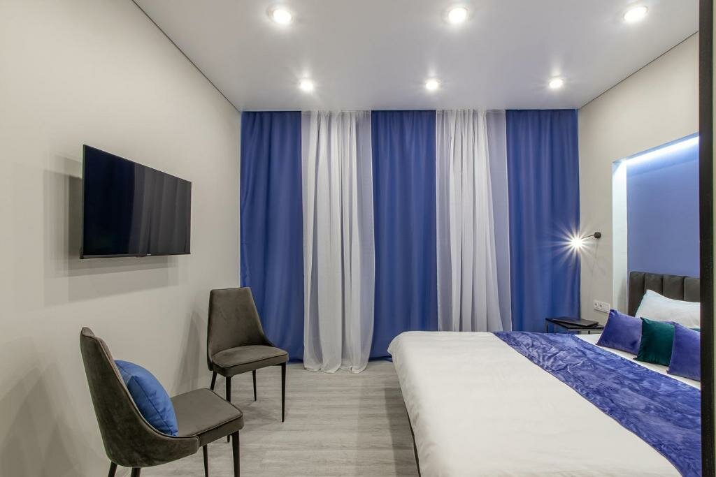 - Чистые номера.; Современный дизайн.; Приятные бонусы (шампанское, пригласительные билеты).; Полный набор средств гигиены в ванной.; Наличие стиральной машины.