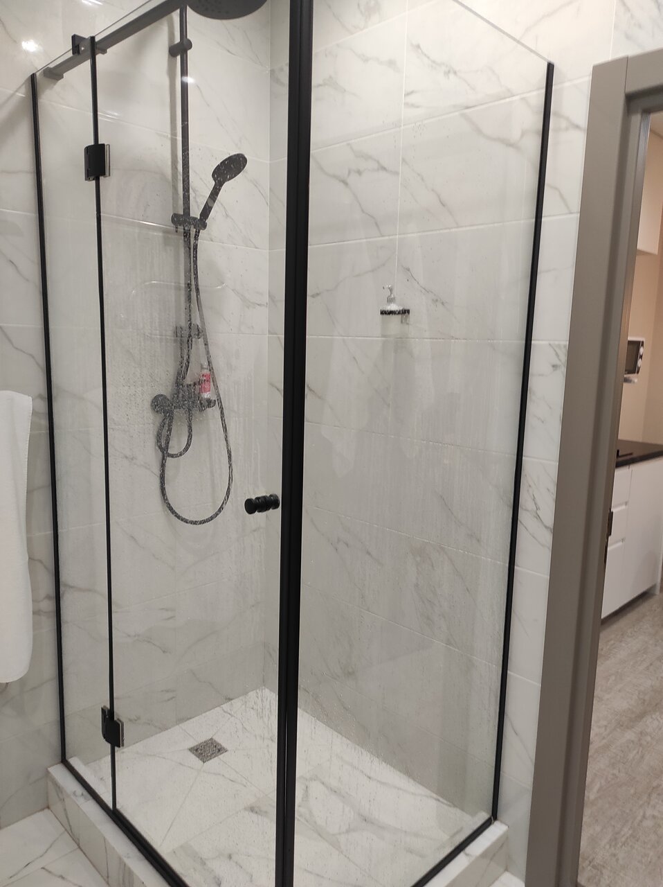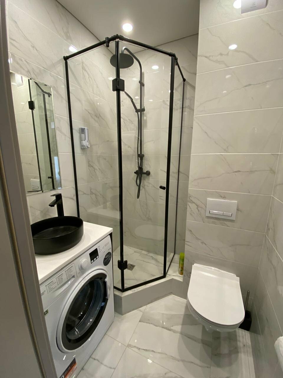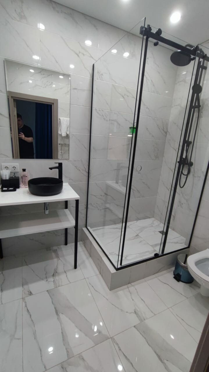 - Просторная душевая кабина.