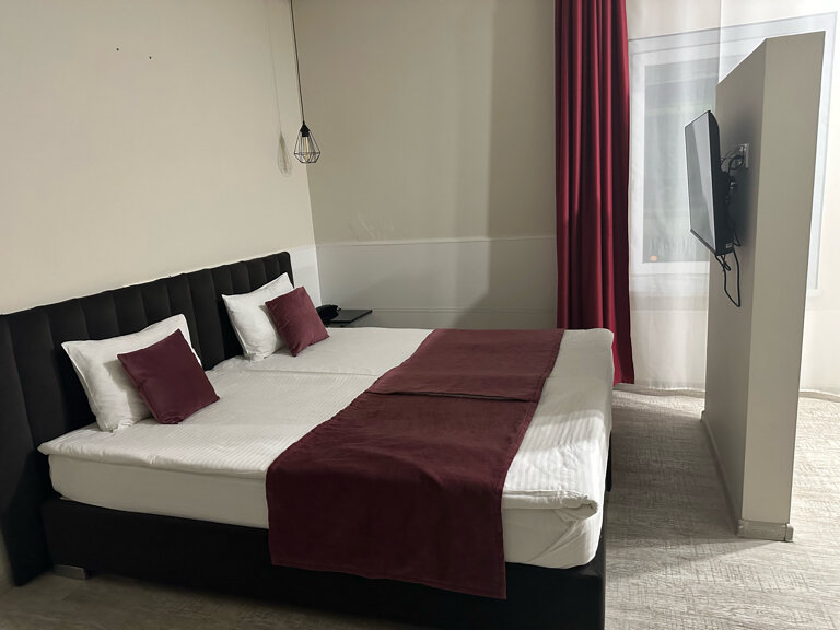 Отличная гостиница — чистая, современная, уютная, тихая. В номере есть все необходимое — посуда, туалетные принадлежности, халаты, фен, кофе по утрам. Вежливый персонал, ежедневная уборка. Останавливаемся на 10 дней. Будем рекомендовать вас знакомым.