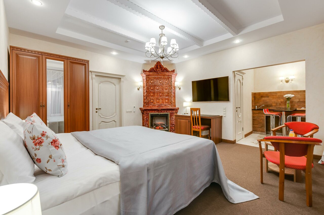 Приятное место по соотношению цена/качество. Привлёк Люкс с камином (электрическим конечно, но все равно красиво и уютно!) и джакузи. Все понравилось, кроме того, что в ванной запах сигарет присутствовал.