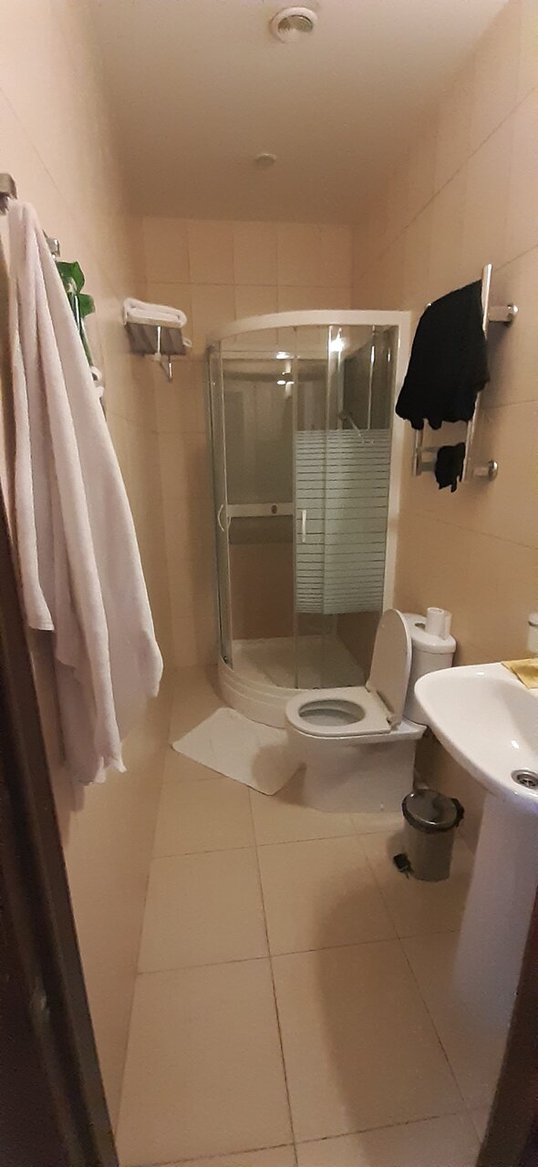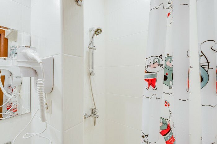 - Хорошая оснащённость (ТВ, холодильник, чай, сахар, кондиционер, фен, душевая кабина).