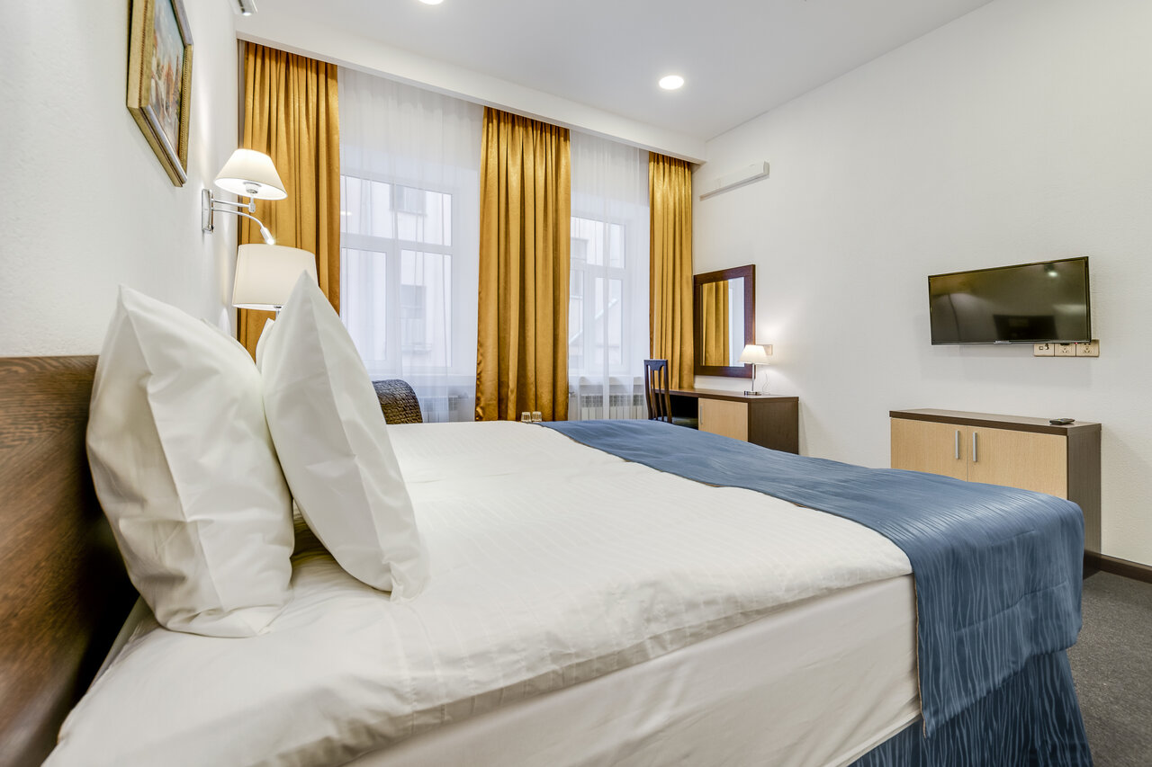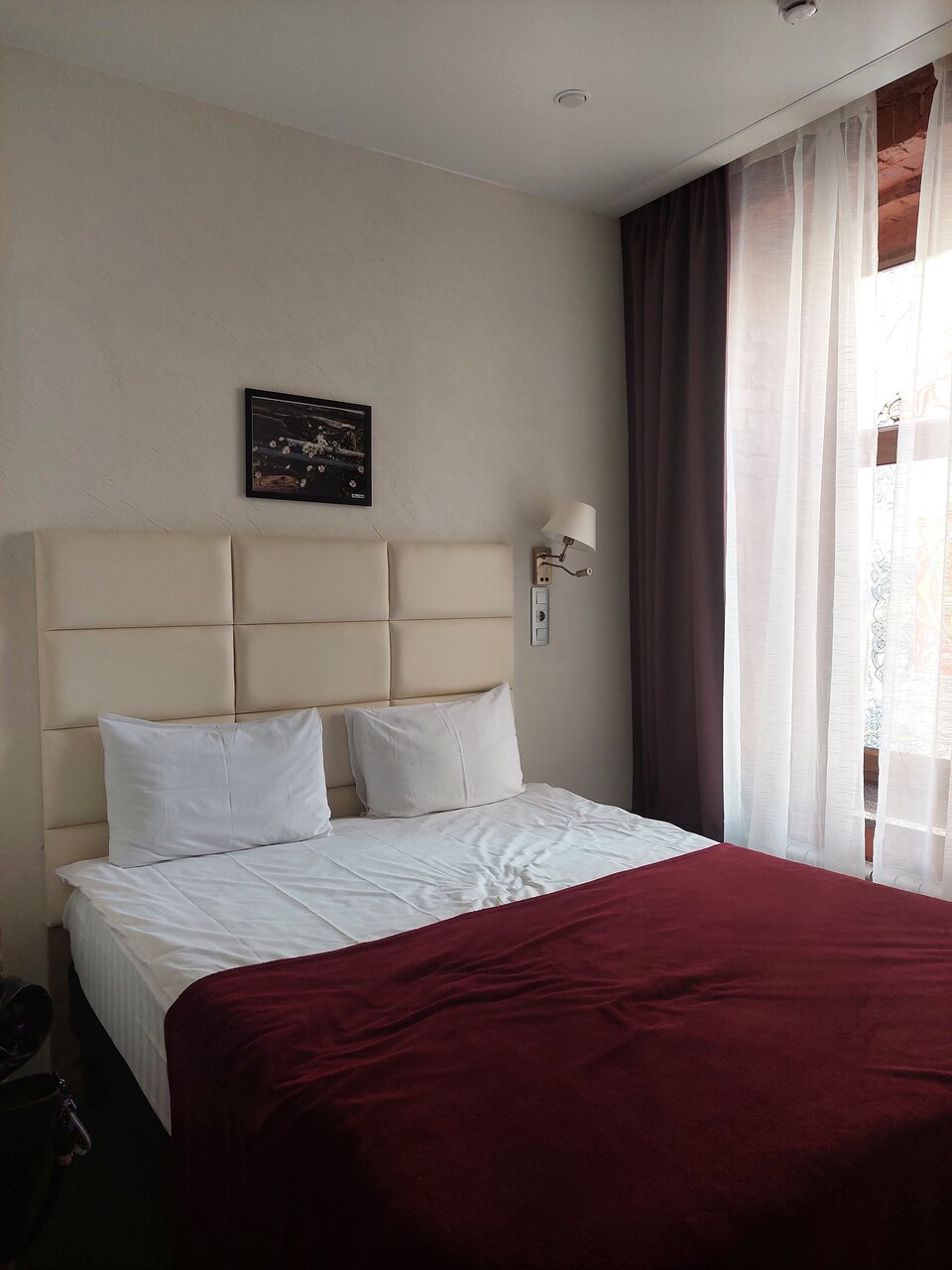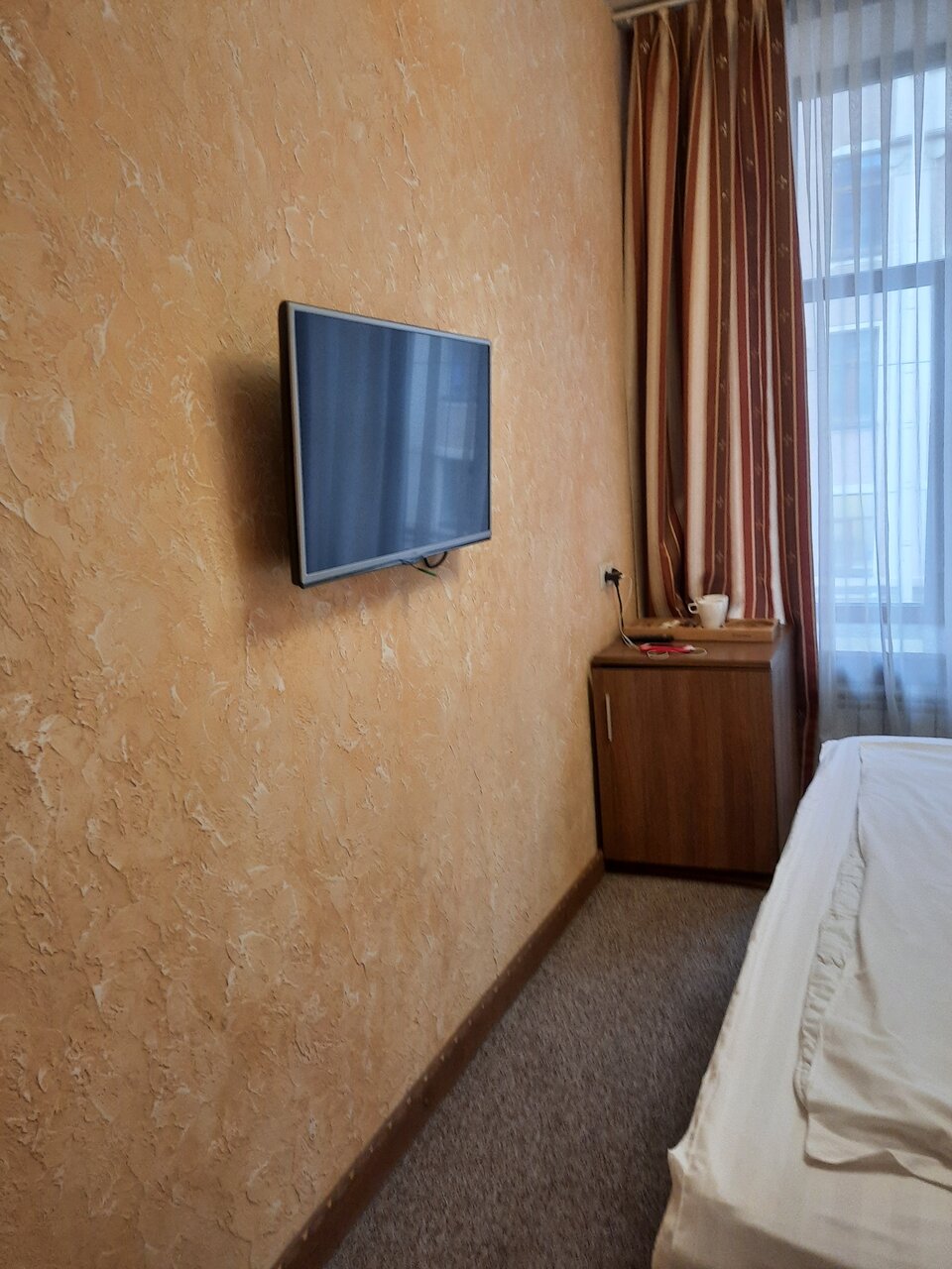 Отличная гостинца. Правда не сразу нашли, поскольку фасад здания на ремонте. Номер за 2300 р. превзошёл все ожидания. Постельное бельё и полотенца чистые. Кровать большая и очень удобная. Спать было комфортно. В номере был телевизор, шкаф для одежды, сейф, стол, стулья. Напор воды в душе был просто шикарен. Не хватало, конечно, одноразовых зубных щёток, но были с собой, поэтому этот недостаток не повлиял на мою оценку. Персонал вежлив. При бронировании номера, по телефону рассказали какие есть номера и соориентировали по ценам, при этом на вотсап прислали фотки номеров. За сутки до этого ночевали в п. Усть-Луге в гостинице за 4200 р., где номер был намного меньше, поэтому было с чем сравнить. Стоимость номеров, действительно, порадовала. Если буду в Питере обязательно остановлюсь в этой гостинице вновь. Спасибо за гостеприимство.