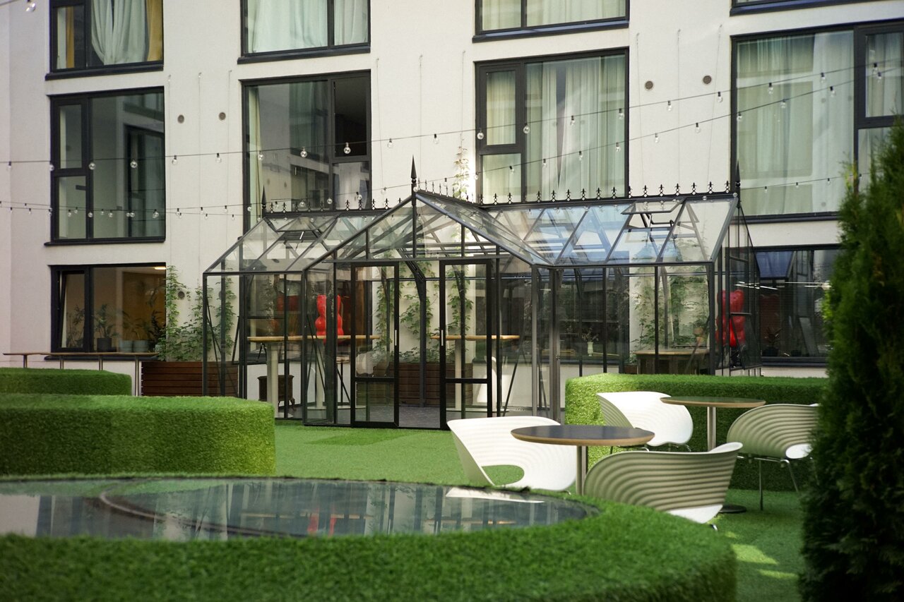 Удобства: — Просторные номера с кондиционером, звукоизоляцией, Wi-Fi, кухонными уголками и санузлами. — Питание: ресторан, кафе, доставка еды в номер (оплачивается отдельно). — Услуги: трансфер (платный), парковка, бесплатная камера хранения, СПА, массаж, салон красоты. — Для гостей: летняя веранда, терраса, бильярд, конференц-зал, коворкинг. — Размещение с животными (платно), детьми (бесплатные кроватки для малышей).