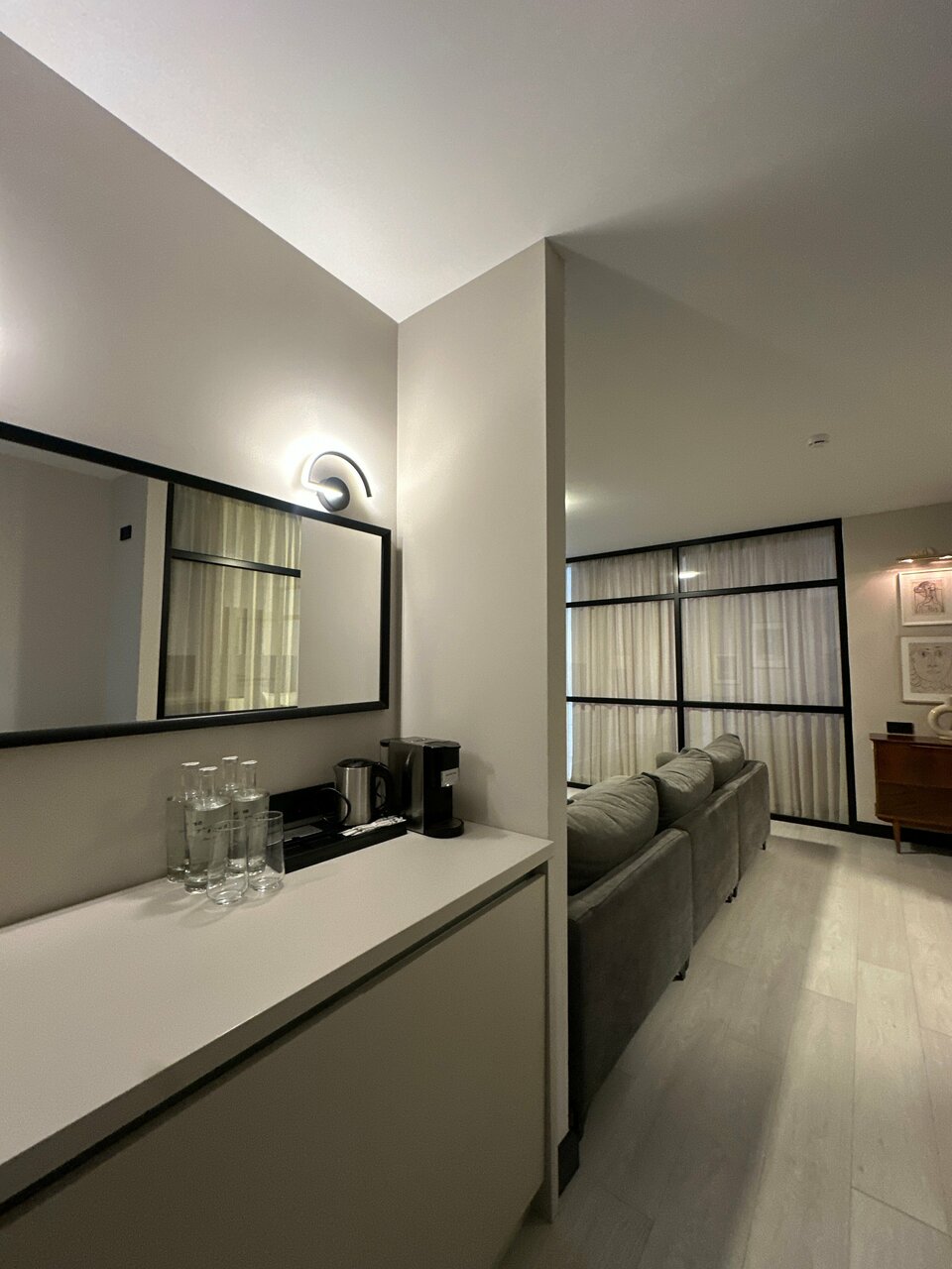 Останавливалась тут и осталась очень довольна! Номер просторный, с продуманным и стильным интерьером. Особенно понравилось, как уютный узорчатый ковёр сочетается с минималистичным дизайном — создаёт очень тёплую и домашнюю атмосферу. В комнате приятно пахнет, чувствуется, что здесь следят за чистотой и деталями. Большой удобный диван — отдельное удовольствие, на нём комфортно и отдыхать, и работать. Ванная комната тоже порадовала — есть и полноценная ванна, и душевая кабина, всё современное и в идеальном состоянии. Отличное место, чтобы расслабиться и почувствовать себя как дома. Рекомендую!