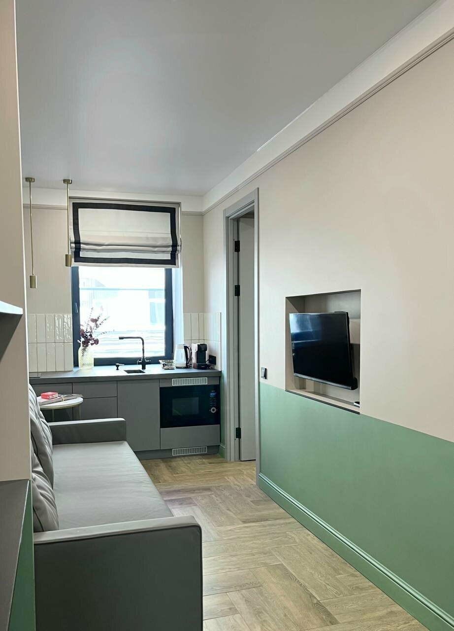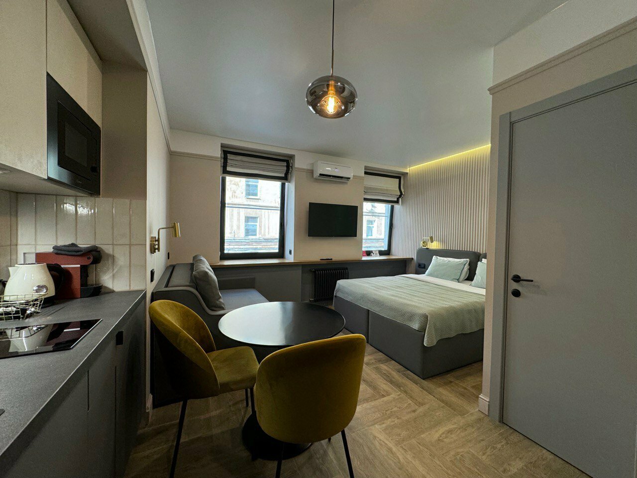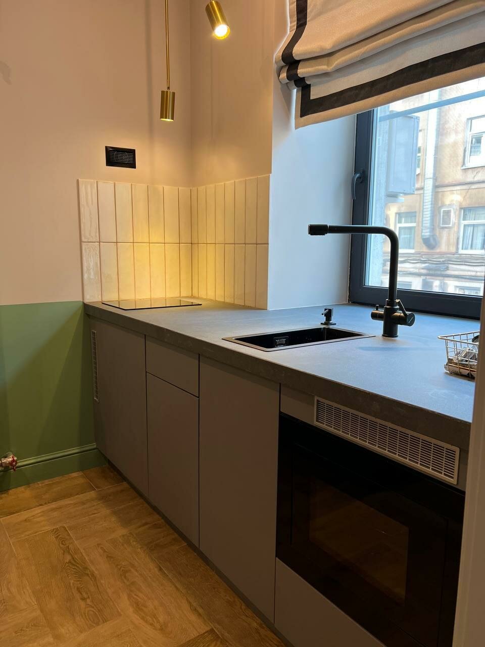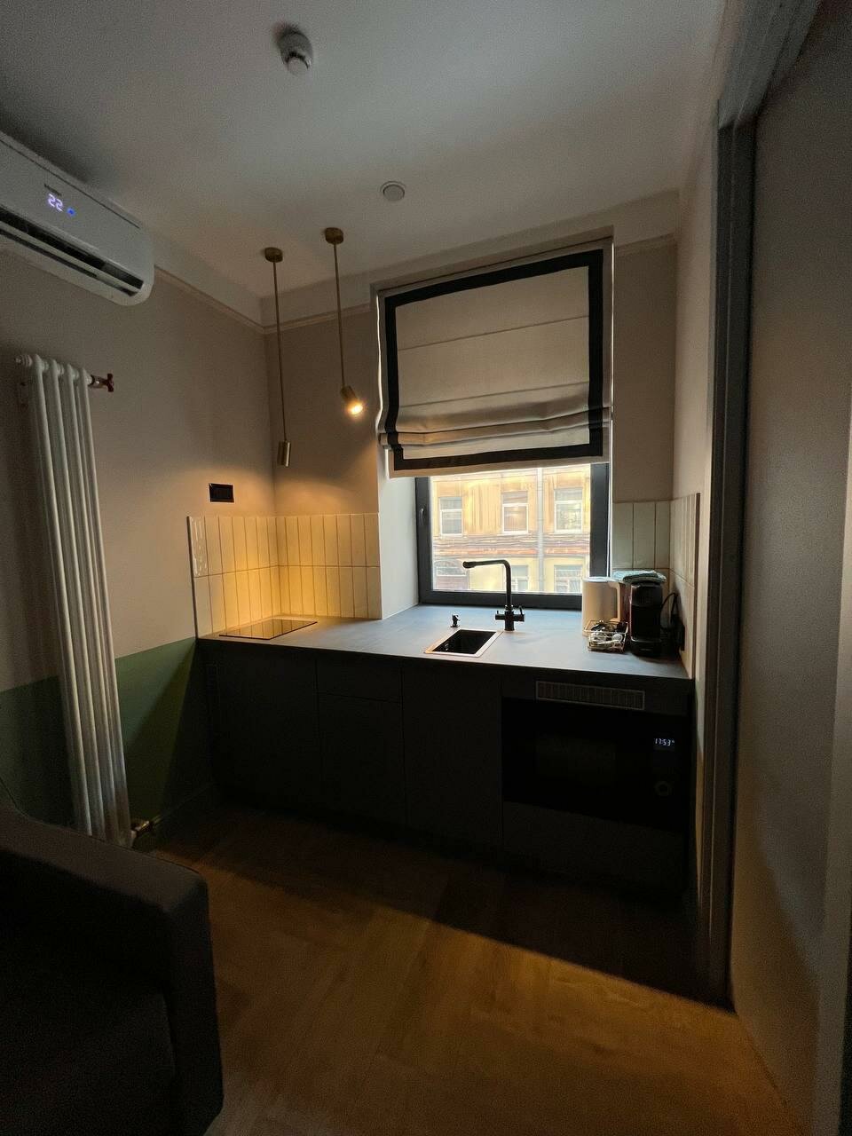 Отличные апартаменты с идеальным расположением, видно что все сделано с душой, все очень современное и модное. Идеальная чистота, все как на картинке, очень приятный управляющий. До этого были в аппартаментах этой сети, вернулись в новые и не прогадали. Семья довольна, достопримечательности рядом, Рубинштейна с ресторанами на противоположной стороне, речные трамвайчики на рассотояние вытянутой руки. До Эрмитажа дошли за 15 минут Русский музей и музей Фаберже за 10 минут. Обязательно вернемся, хорошего вам вам развития)