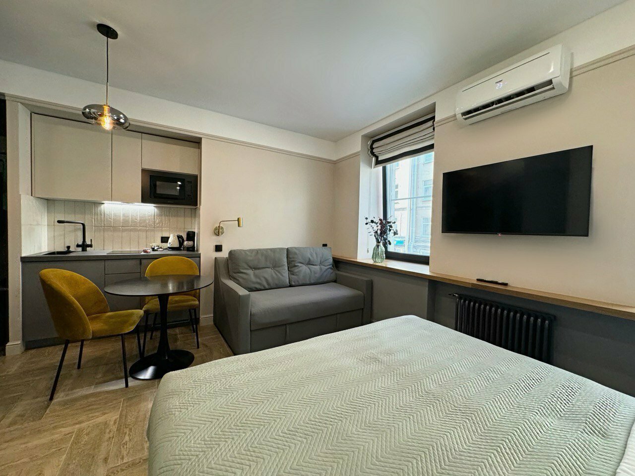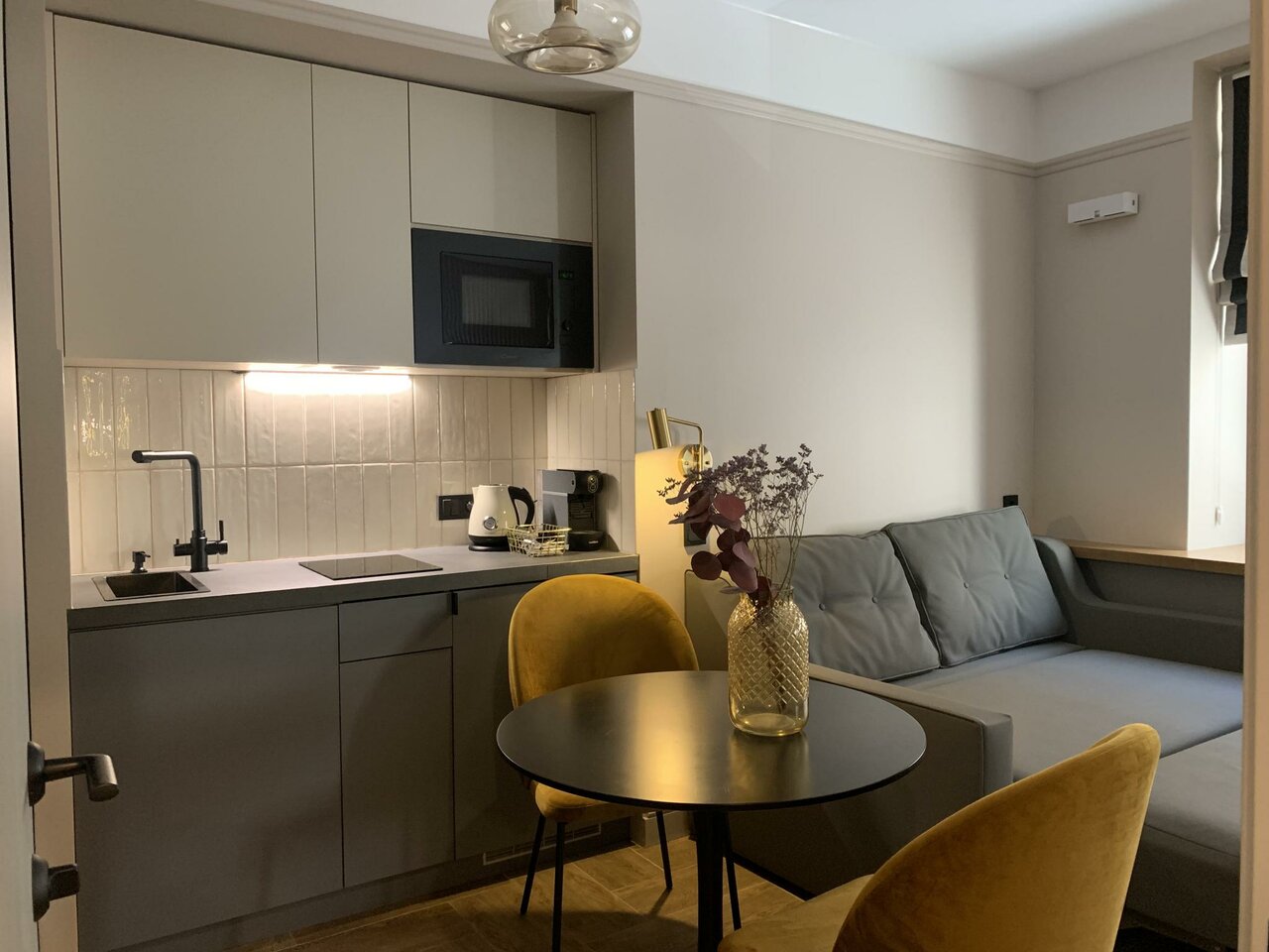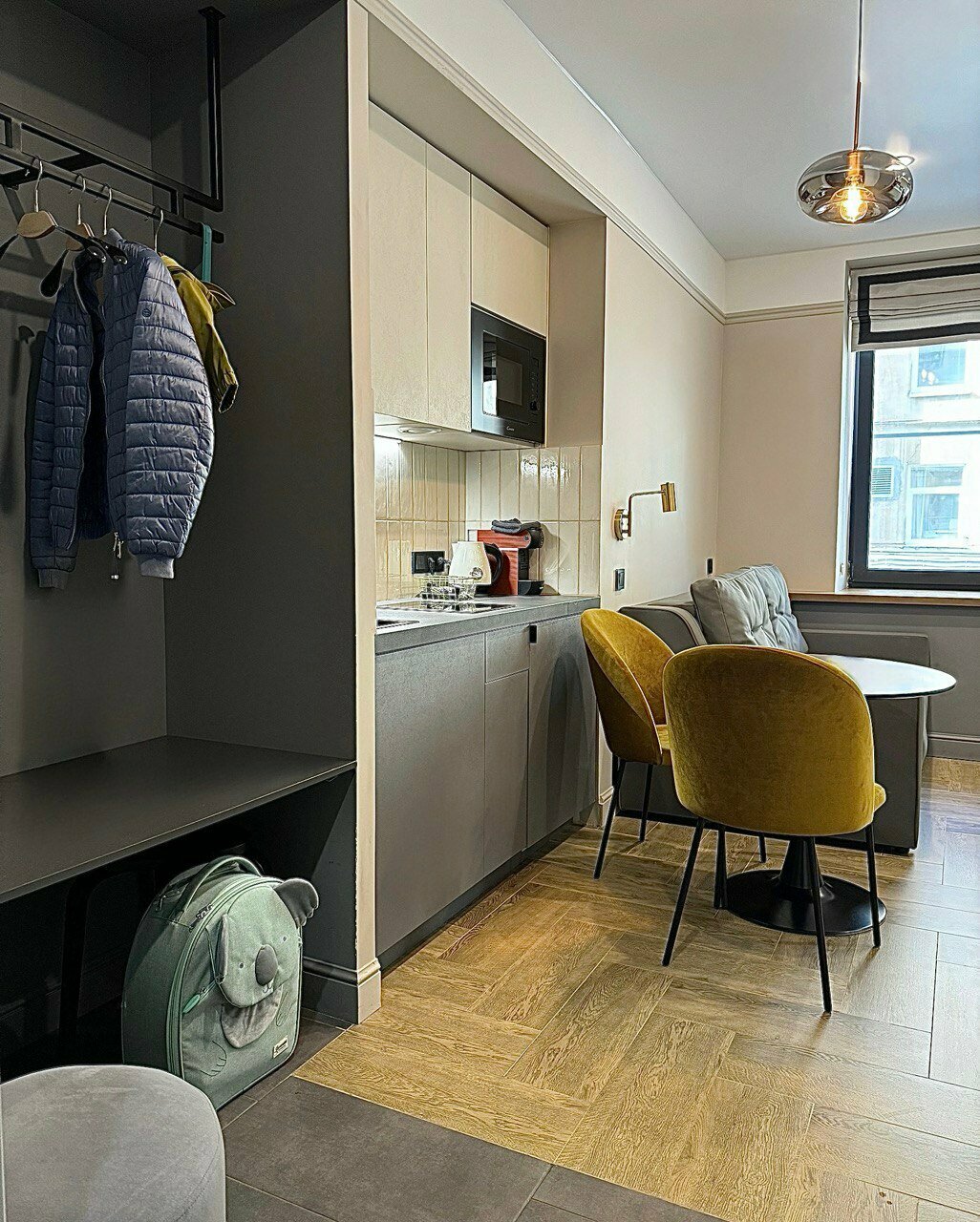 В очередной раз отдыхали в одних из Апартаментов Рубинштейна. В этот раз на Невском, 82. Впечатления только положительные. При относительной компактности все очень эргономично. Дизайн и оснащение комфортны до мелочей. Для меня даже факт наличия длинной прочной ложки для обуви большое удобство. В наличии хороший зонт, что очень практично для нашей Северной столицы. Наличие современной стиральной машины с современным средством для стирки, капсулы для кофемашины, чай, стационарный фильтр с новыми фильтрующими элементами, гладильная доска и т. д. Очень нравится расположение в абсолютном историческом центре. Доступ через систему электронных замков в любое время заезда очень удобен. Тихий, чистый двор, что не всегда отмечается в Питере. Изолированная спальня с удобной кроватью также подкупает. Телевизоры с широкии онлайн контентом. Уже забронировали новую поездку сюда же. Отдельное спасибо за оперативность и приветливость онлайн администратору!