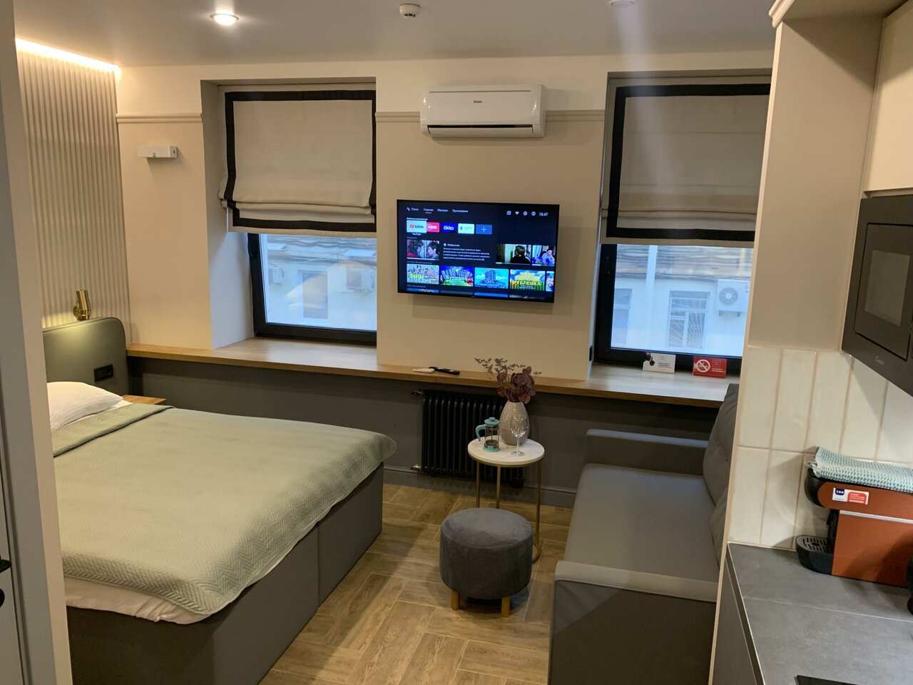 Мне очень понравились апартаменты, с удовольствием остановлюсь у вас еще раз прекрасное расположение. Очень комфортные, современные, эргономичные апартаменты. Отмечу, что вся сантехника, да и вообще ремонт и мебель абсолютно новые, очень качественные и видно, что все сделано с душой и с ориентиром на потребности гостей. Спасибо, что всегда были на связи