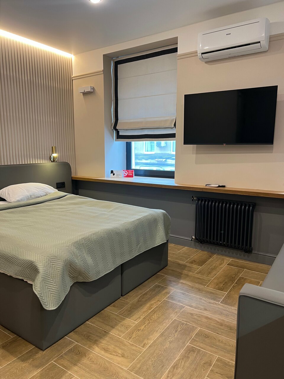 Прекрасная локация — не далеко от Казанского и Рубинштейна. За углом отличный грузинский ресторан, в 100 метрах паб) номер очень чистый, все продумано до мелочей. В номере есть утюг, доска, холодильник, плита, столовые приборы и посуда для приготовления еды. Еще раз отмечу идеально чистую ванную комнату и хорошую душевую кабину — ничего никуда за её пределы не вытекает, сантехника отличная, проблем с водой не было. Есть и мыло и гель для душа и даже пакеты для использованных гигиенических принадлежностей для дам! Номера с современным интерьером, ожидание- реальность совпали. Отель находится внутри двора, проблем с шумом не было, если не открывать окна — вообще ничего не слышно. Организаторы всегда на связи , заселили нас раньше времени- за что огромное спасибо. Спасибо за гостеприимство , остановлюсь у вас еле раз обязательно ! Не теряйте уровень сервиса и чистоты. И делаю хороших гостей, чтобы относились к месту проживания как к своей квартире.