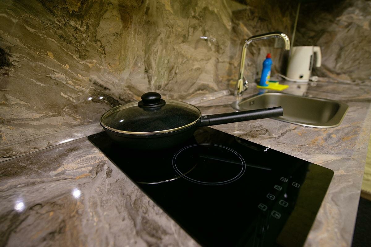 - Полный набор необходимой посуды и бытовой техники (холодильник, фен, кухня).