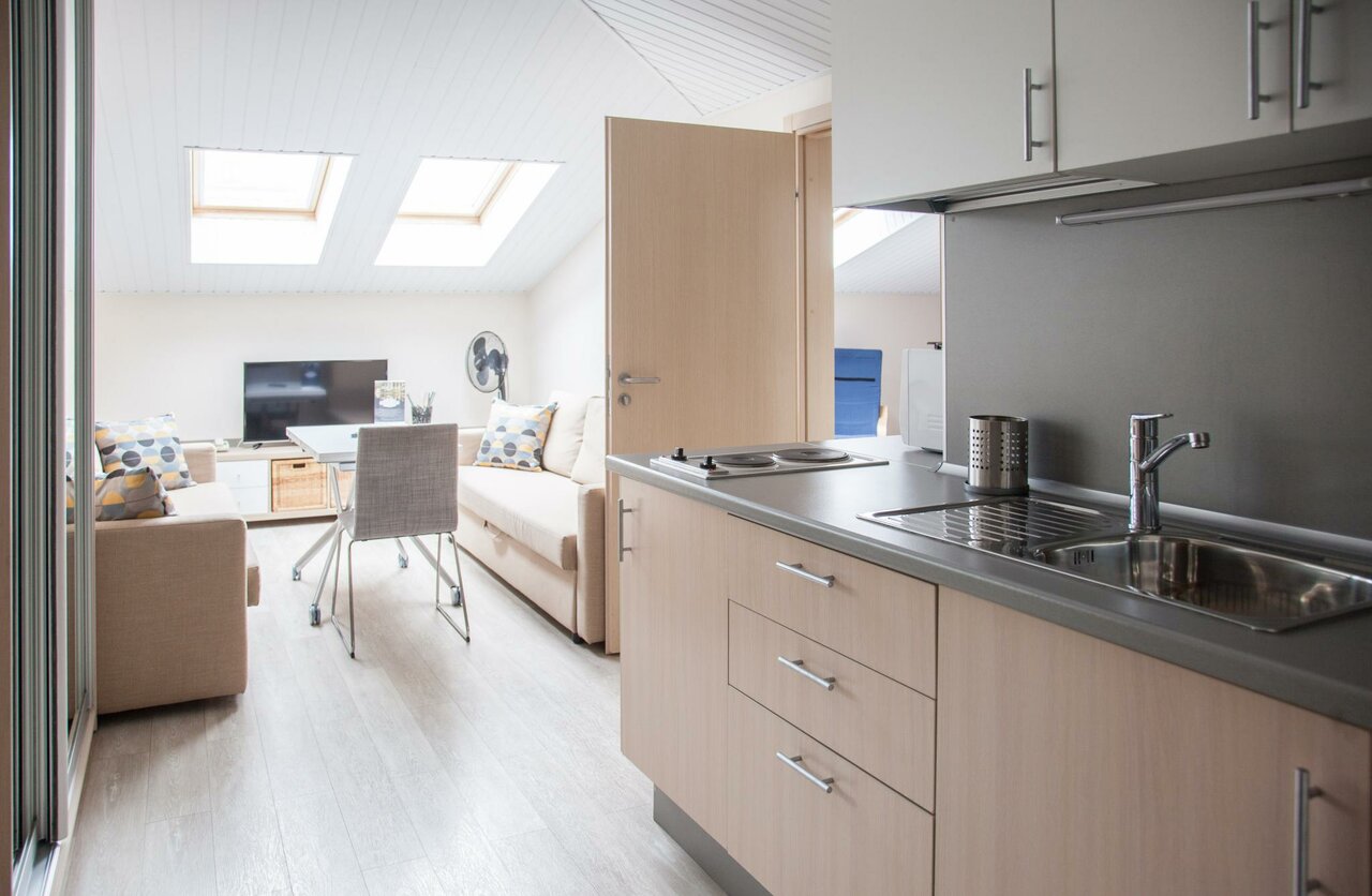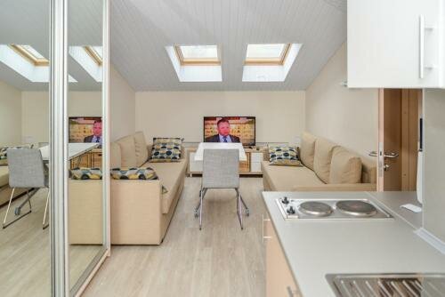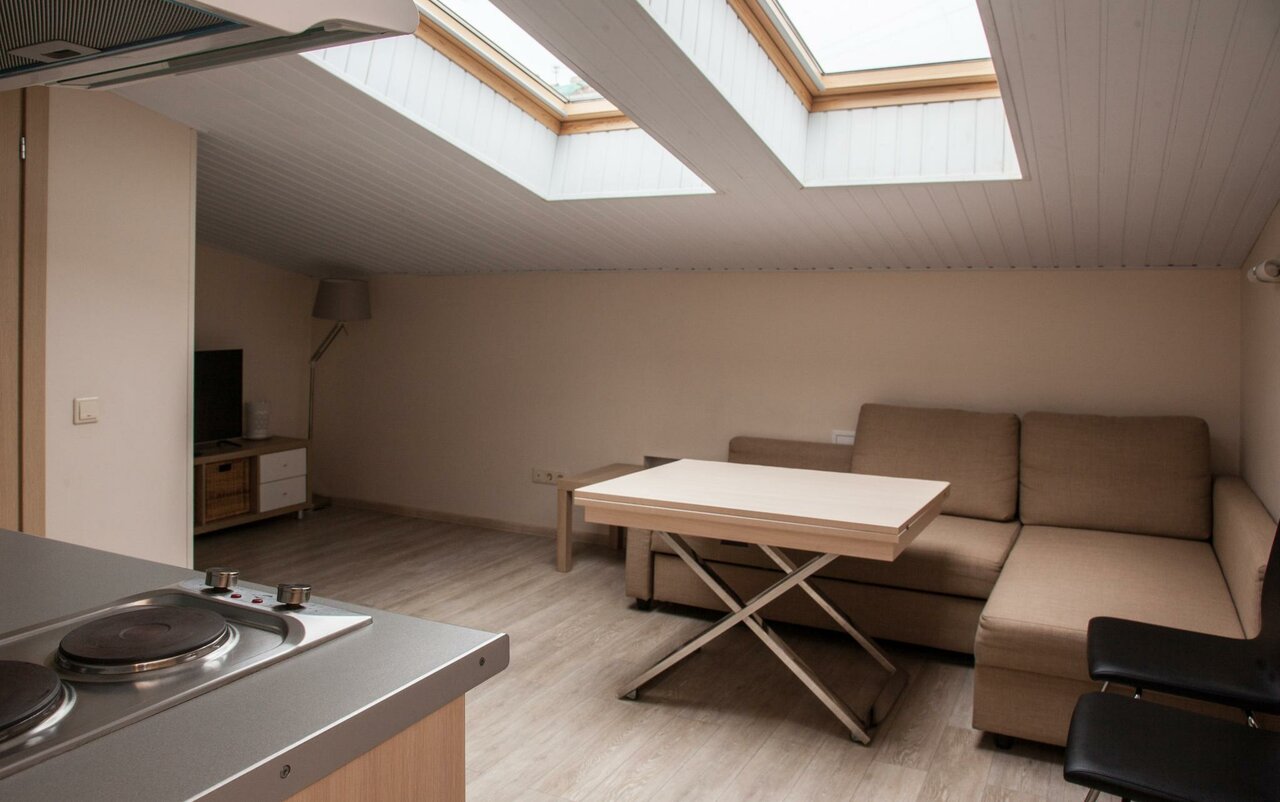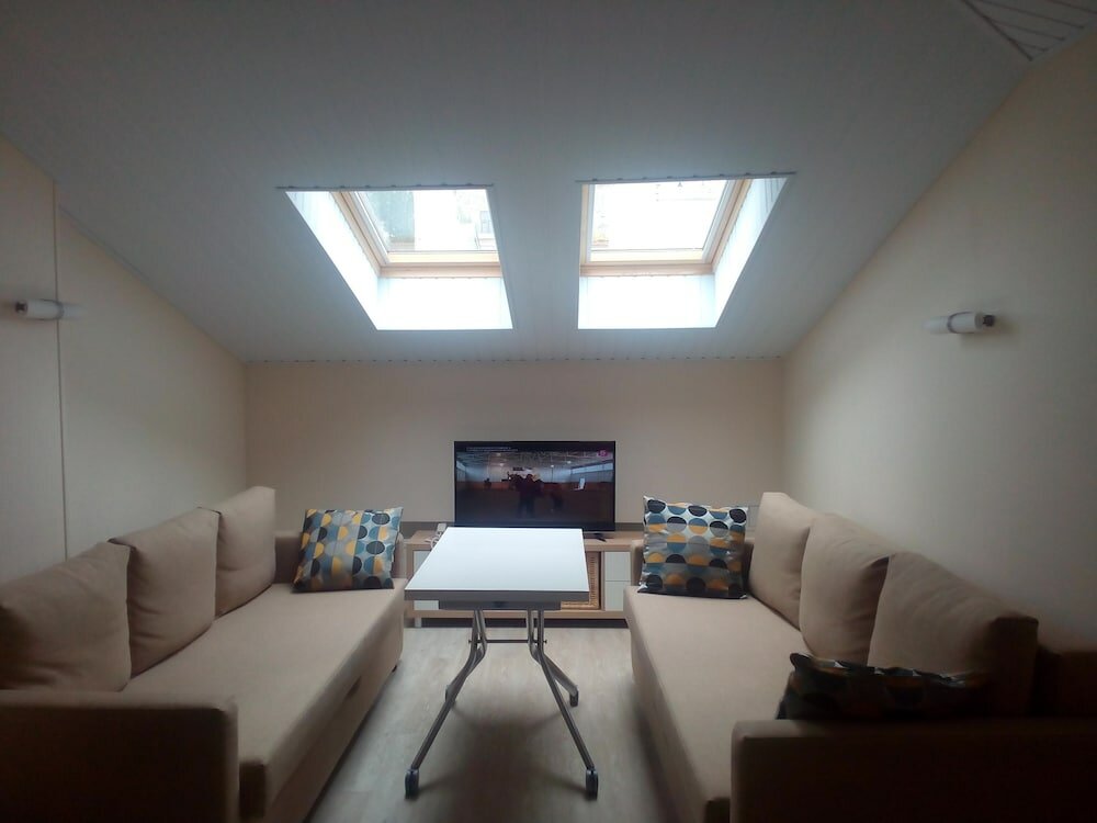 - Красивый дизайн (кирпичные стены, мансардные окна).