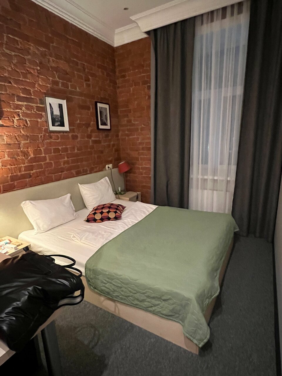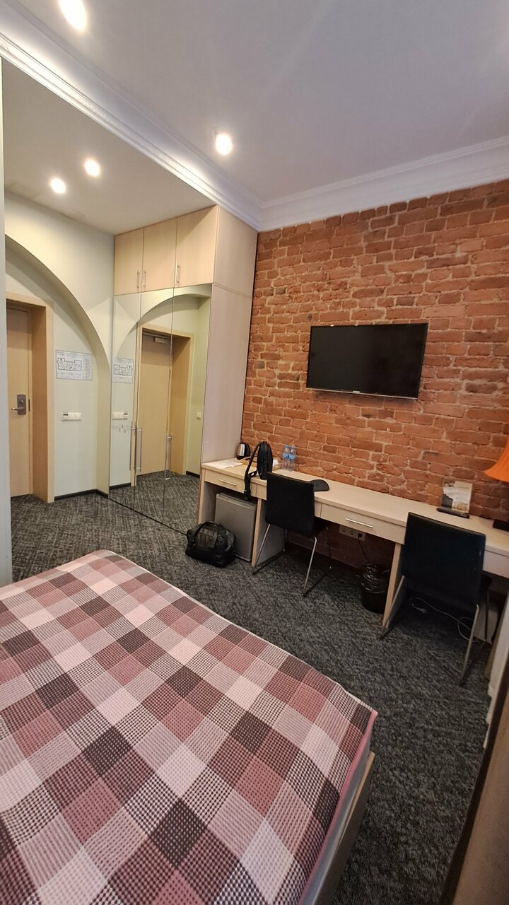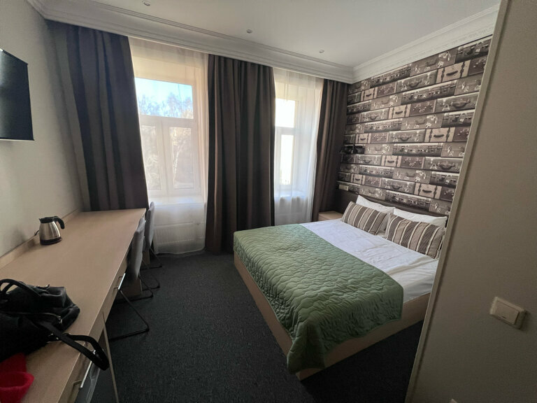 Забронировали на трое суток. Фото на сайте отеля и реальность, это разные вещи. Полное несоответствие. Цена за ночь 3700 руб, заселили нас в категорию номера намного хуже, чем мы бронировали. Наш же номер оказался занят, ‘ не нравятся, не заселяйтесь, можете отказаться ‘. Под окнами магазин алкоголя, постоянная тусовка, компании на машине с громкой музыкой, пьяные компании. В номере стоит стул и кровать и всё! Отель работает по предоплате, то есть они берут предоплату, а заселять потом не куда! В комнате грязно, пахнет сыростью, в кровате клопы. После первой ночи мы ушли. Написали заявление на возврат денежных средств за не прожитые дни. Пообещали. А по факту занесли нас в чёрный список и молчок. Не вздумайте сюда приезжать!!!