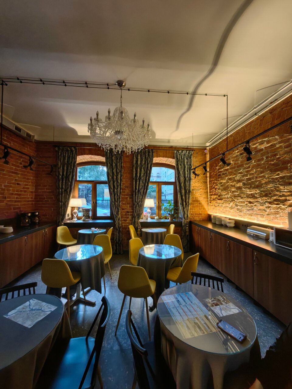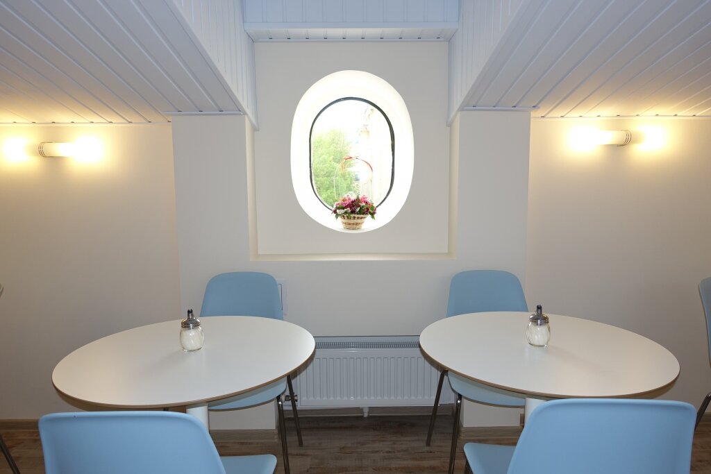 Классное, душевное место. Старый дом, атмосферно. Открытые кирпичи в оформлении номеров, окно в санузле. Номер небольшой, но если вы приехали с хорошим настроением это ничто. Завтраки есть, иногда так удобнее. Место тихое, двор. Площадка детская рядом была пустая. Так что этот момент оценить не было возможности