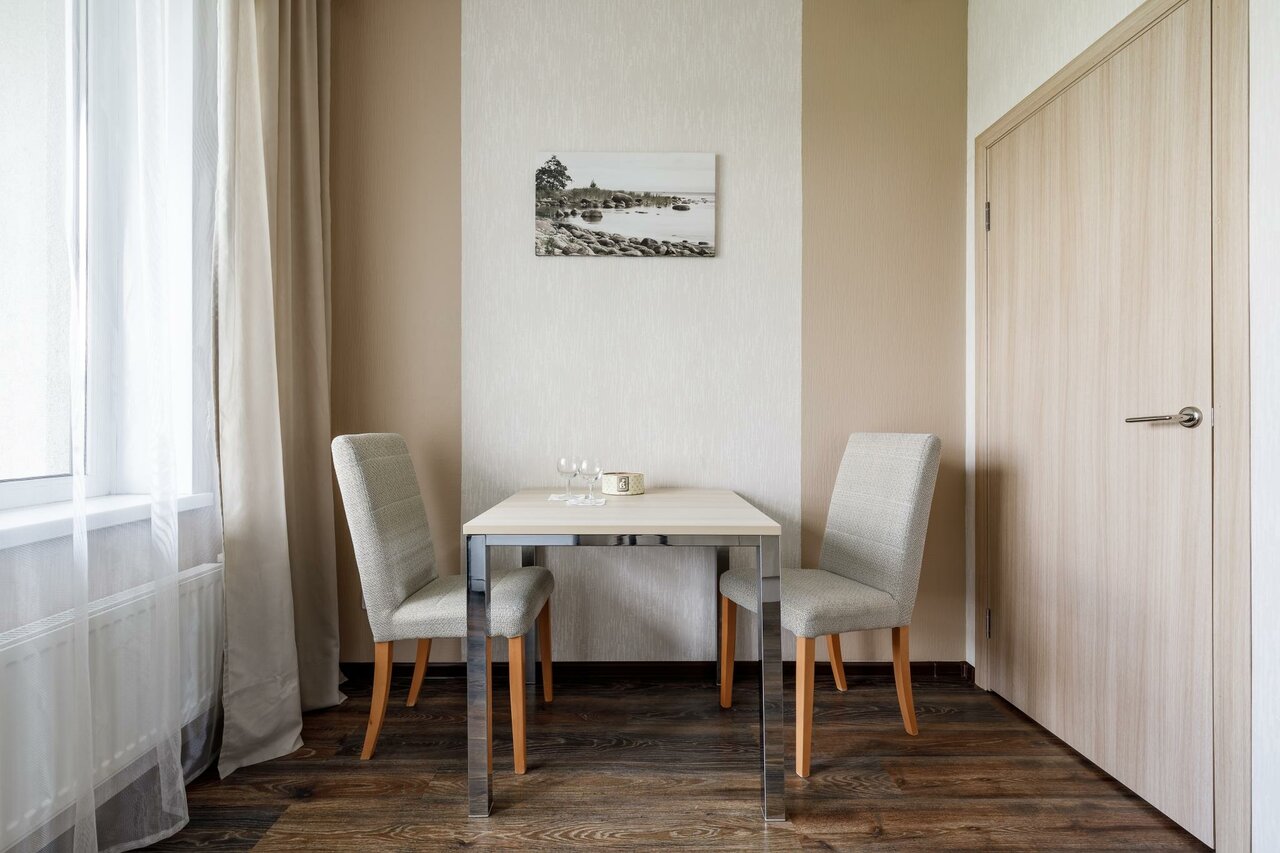 - Демократичные цены в кофе-баре.; Хорошая транспортная доступность.; Удобная локация до аэропорта.; Просторные номера и хорошая мебель.; Отдельные квартиры, комфортные и уютные.