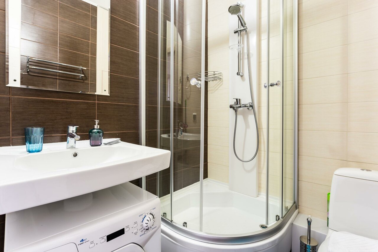 Апартаменты 34 кв.м. с отдельной кухней и спальней, улучшенная меблировка, двуспальняя кровать, стиральная машина. Ванная комната с душевой кабиной. Холодильник, микроволновая печь, фен, утюг, гладильная доска, вся необходимая посуда и текстиль.