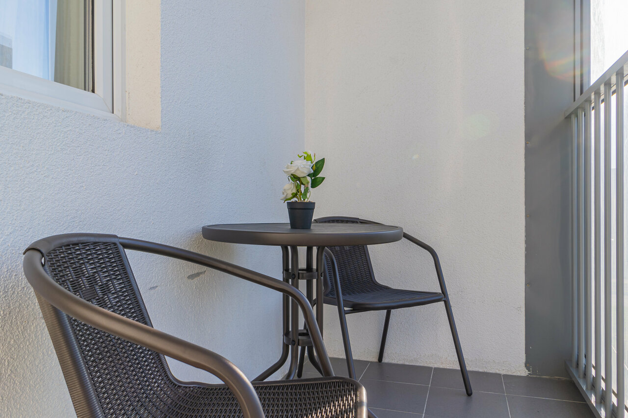 Предоставляет комфортные номера с кухонными уголками, звукоизоляцией, Wi-Fi, телевизором и необходимой бытовой техникой (холодильник, микроволновка, плита, посудомойка, стиральная машина). В наличии тренажёрный зал, бесплатная парковка и велопарковка.