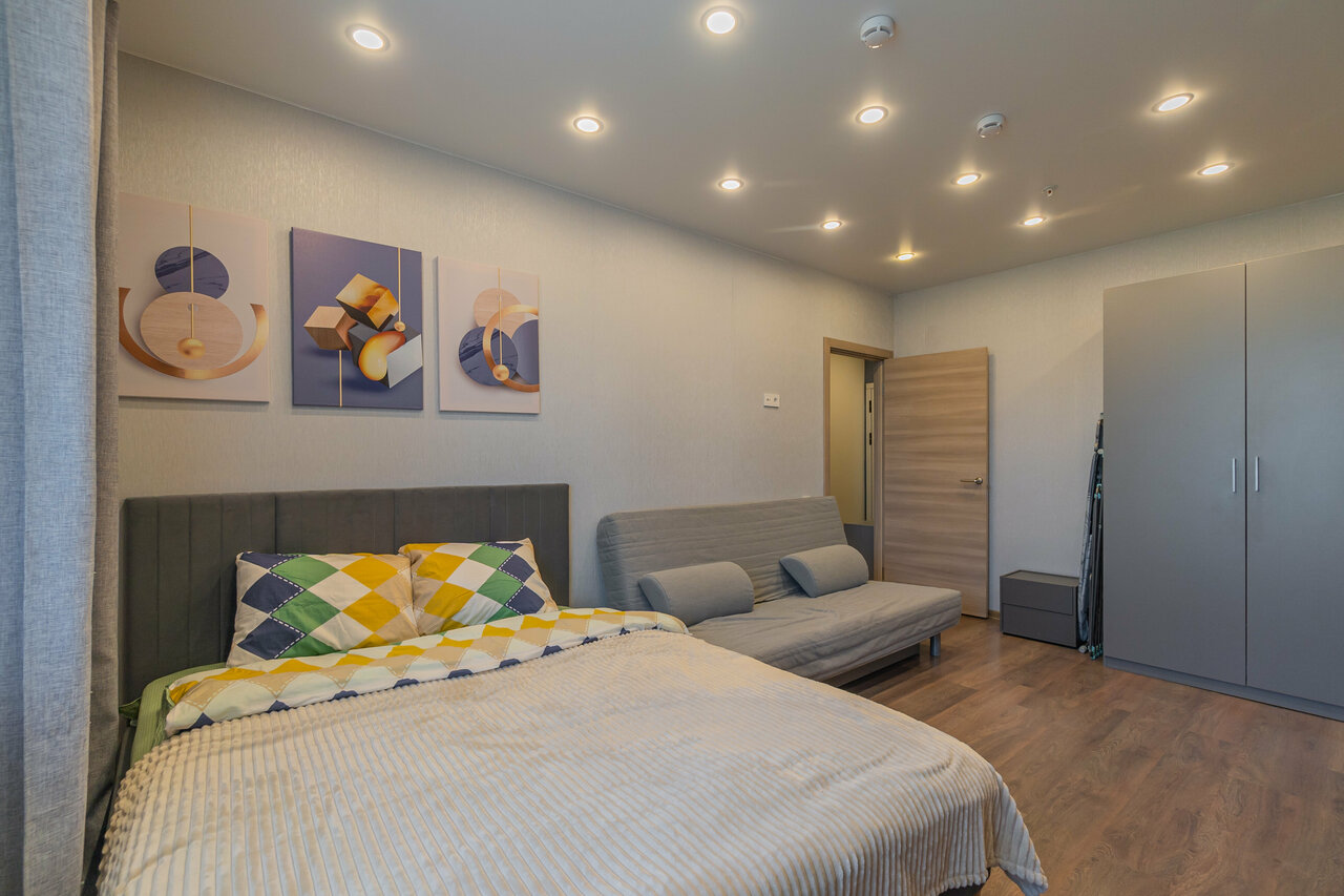 Великолепное расположение, прямо в доме кафе, магазин Магнит, пункты Озон, Яндекс, Валберис. Отличная, большая парковка. Рядом Кад, до центра 15 мин. По Октябрьской набережной. Сами апартаменты комфортабельные. рекомендую