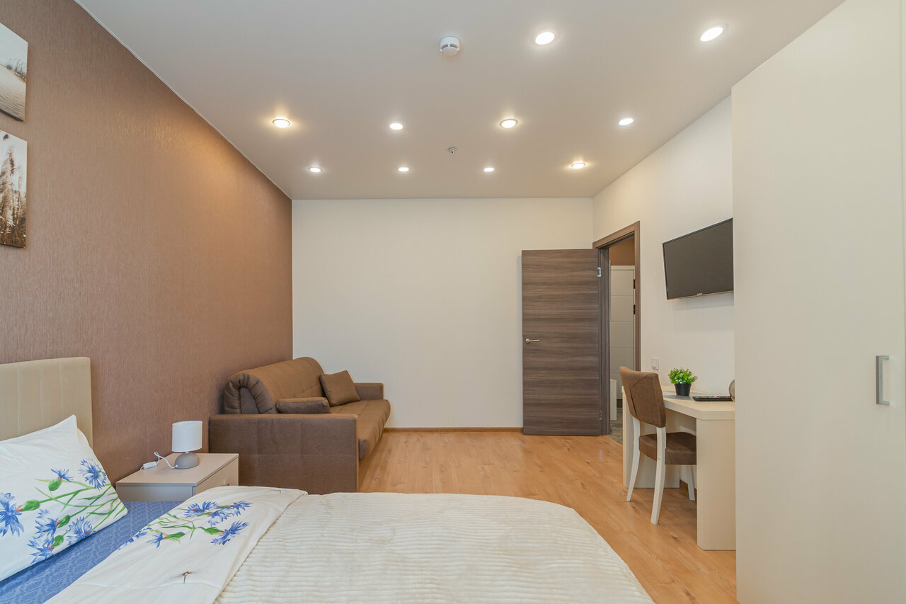 Отличные апартаменты! Чисто, уютно. Рядом есть всё что нужно. Магазины, маркетплейсы, фитнес, еда на месте и на вынос.