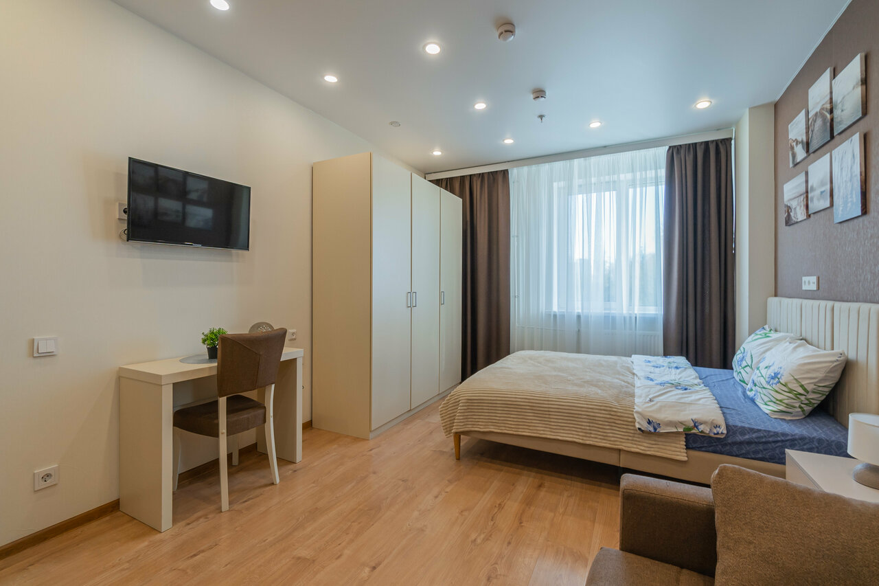 Все хорошо. Проживание понравилось. Все работает. Чисто. К сожалению когда заехали батареи были завешаны стираным постельным бельем. Понравилось общение с администратором онлайн. На все вопросы отвечали. Залог вернули вовремя как и обговаривалось в первые сутки. Фото вид из окна 10 этажа. Единственное добавила бы нормальную швабру чтобы можно было протереть пол самостоятельно.