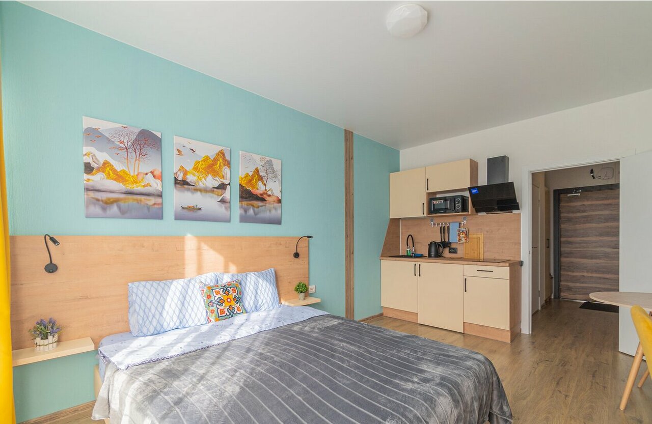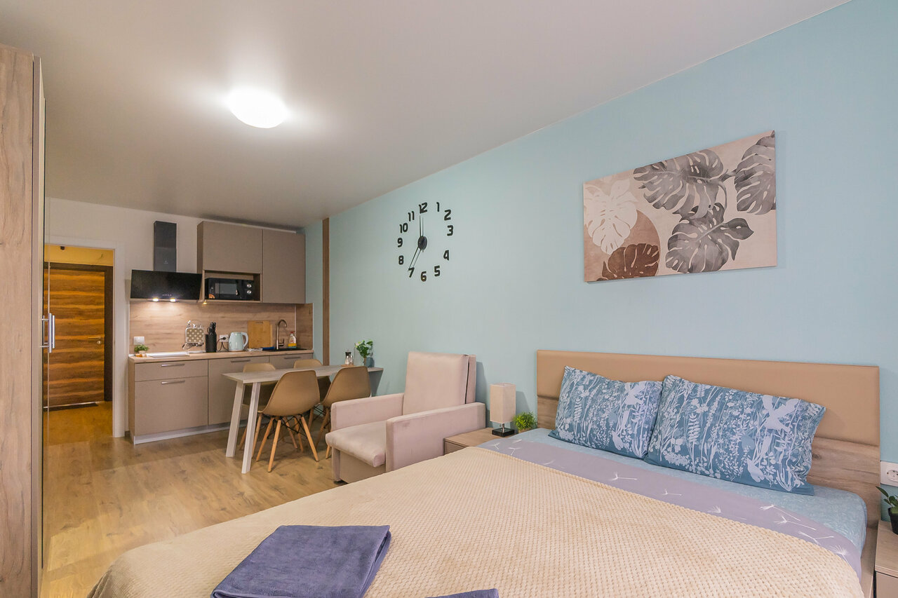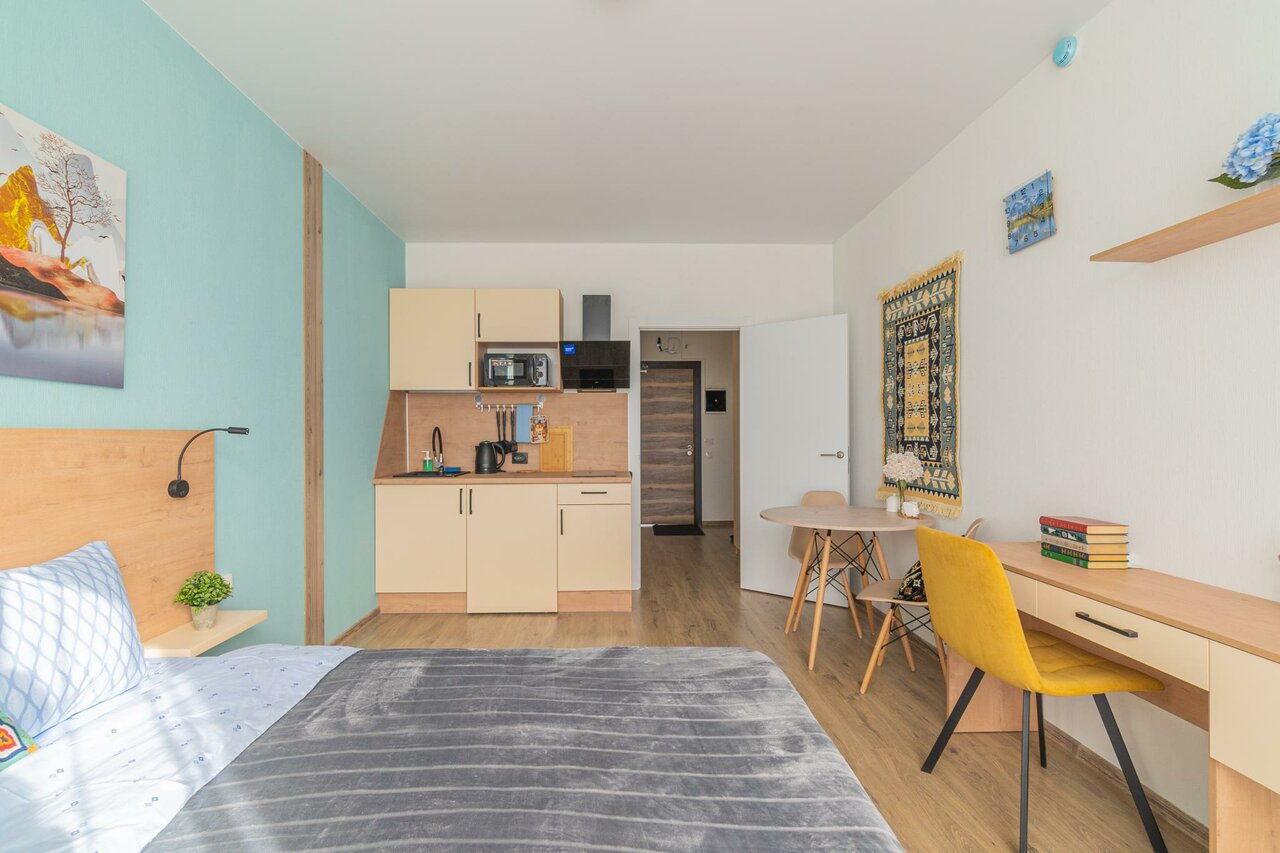 - Дистанционное заселение и выезд.; Апартаменты полностью укомплектованы всем необходимым.; Хороший номер, есть все необходимое.; Демократичные цены.