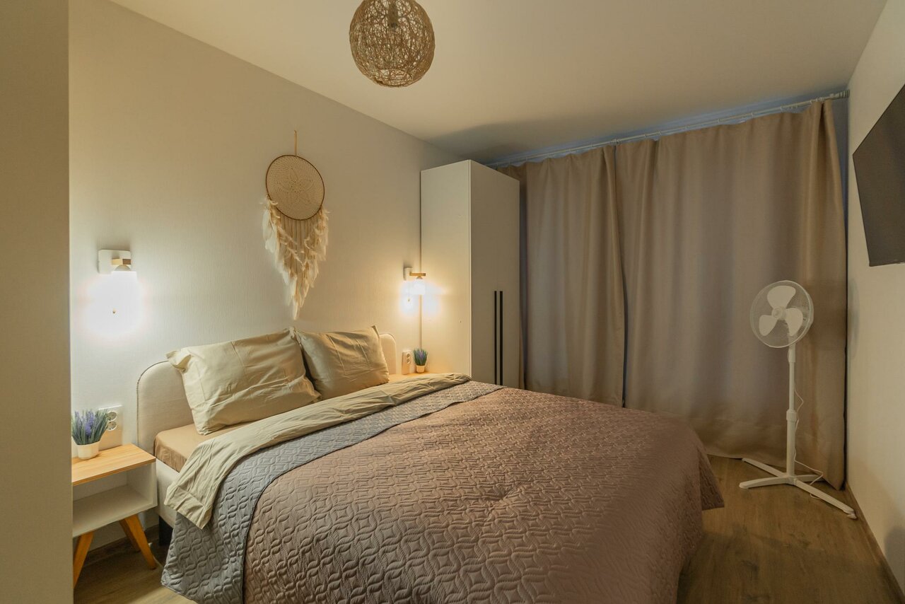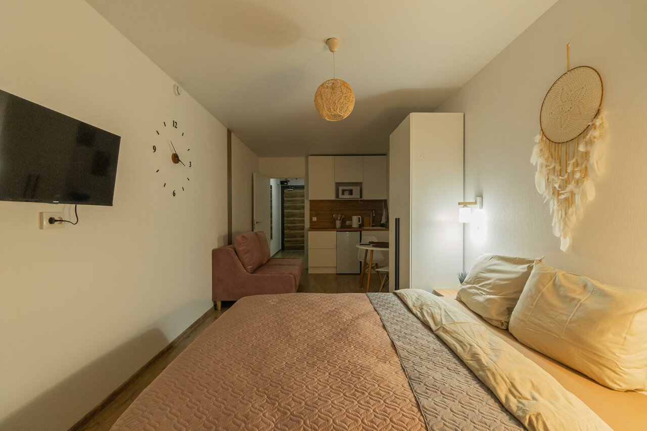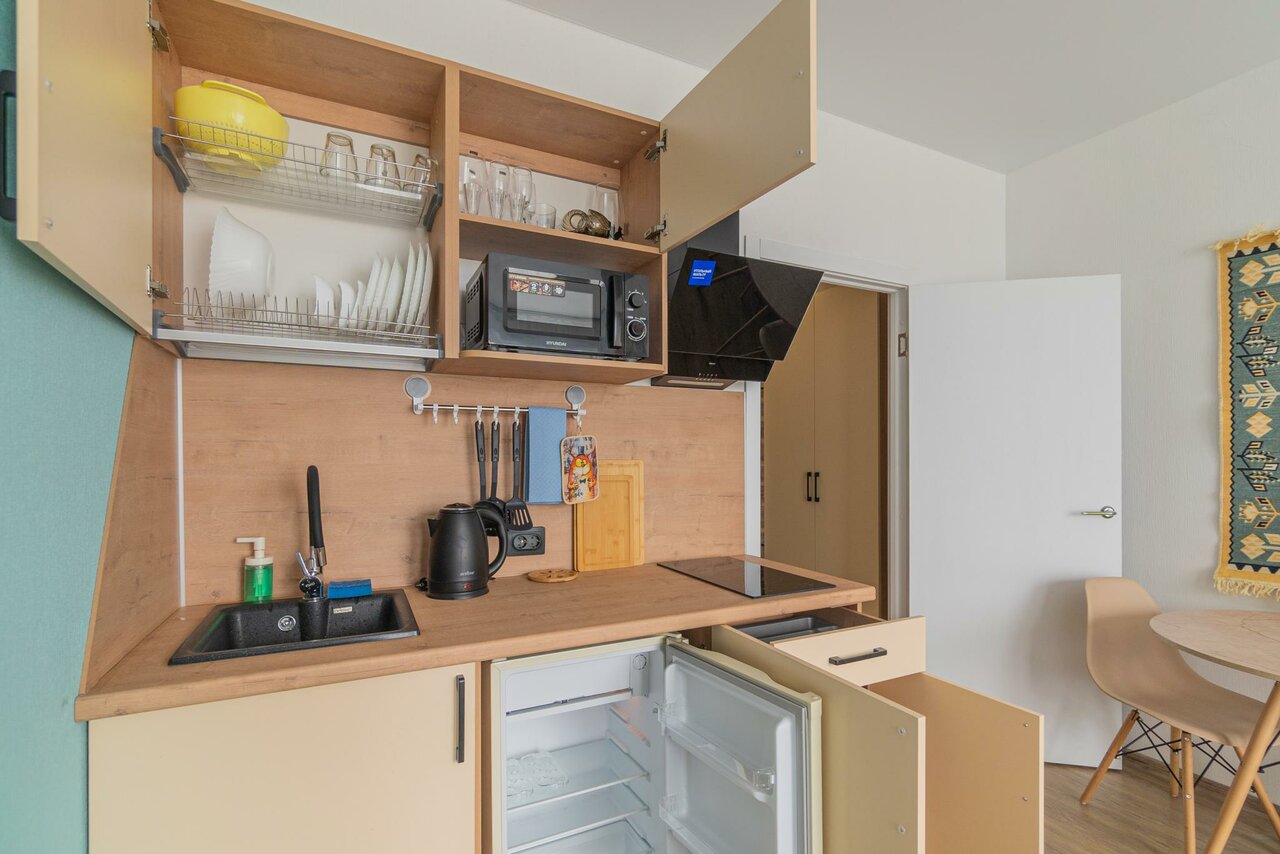 - Дистанционное заселение и выезд.; Апартаменты полностью укомплектованы всем необходимым.; Хороший номер, есть все необходимое.; Демократичные цены.