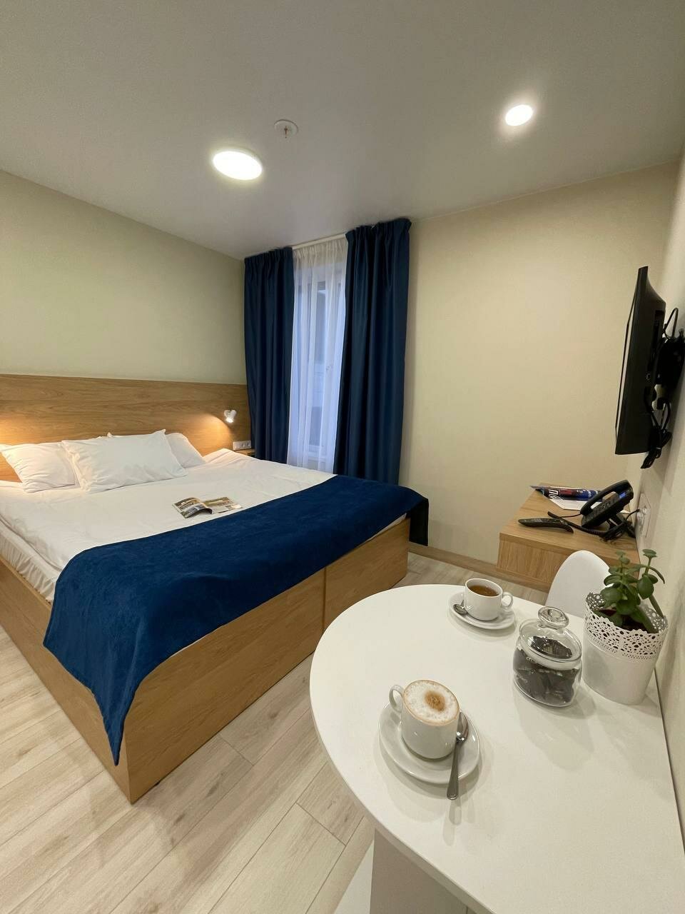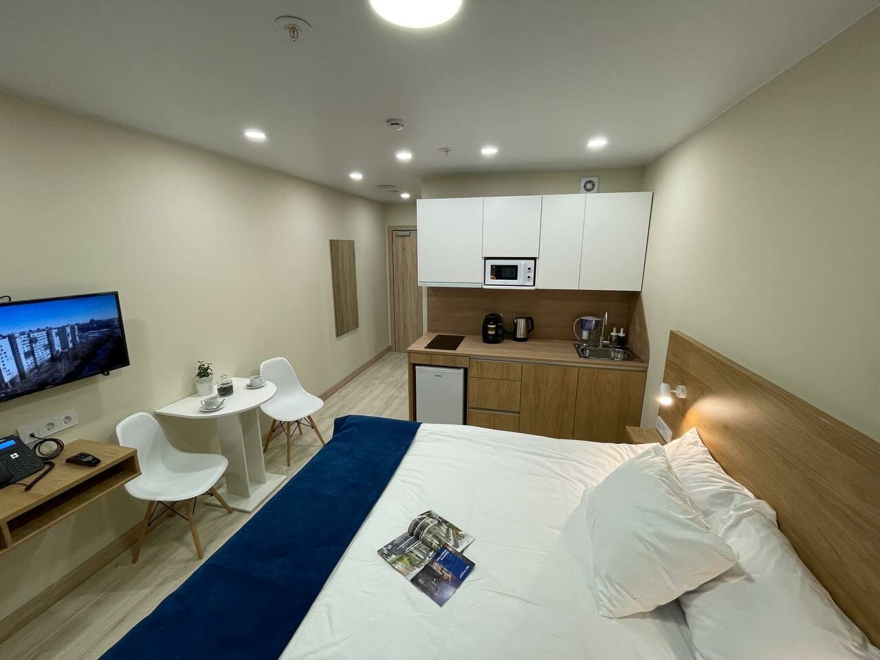 Относительно новый отель,чисто,комфортно.,есть мини кухня.кафе,но выбор не очень большой. Минусы:нет кондиционера,с парковкой часто проблема,ночью бывает шумно на улице от самих проживающих, веселятся и охрана не реагирует..Периодически шумовая атака проверкой пожарной сигнализации-очень неприятно,хотя понять можно…Пару раз отключали горячую воду почти на сутки каждый раз. Перед центральным входом любители покурить постоянно этим занимаются ,для не курящих это не очень приятно.