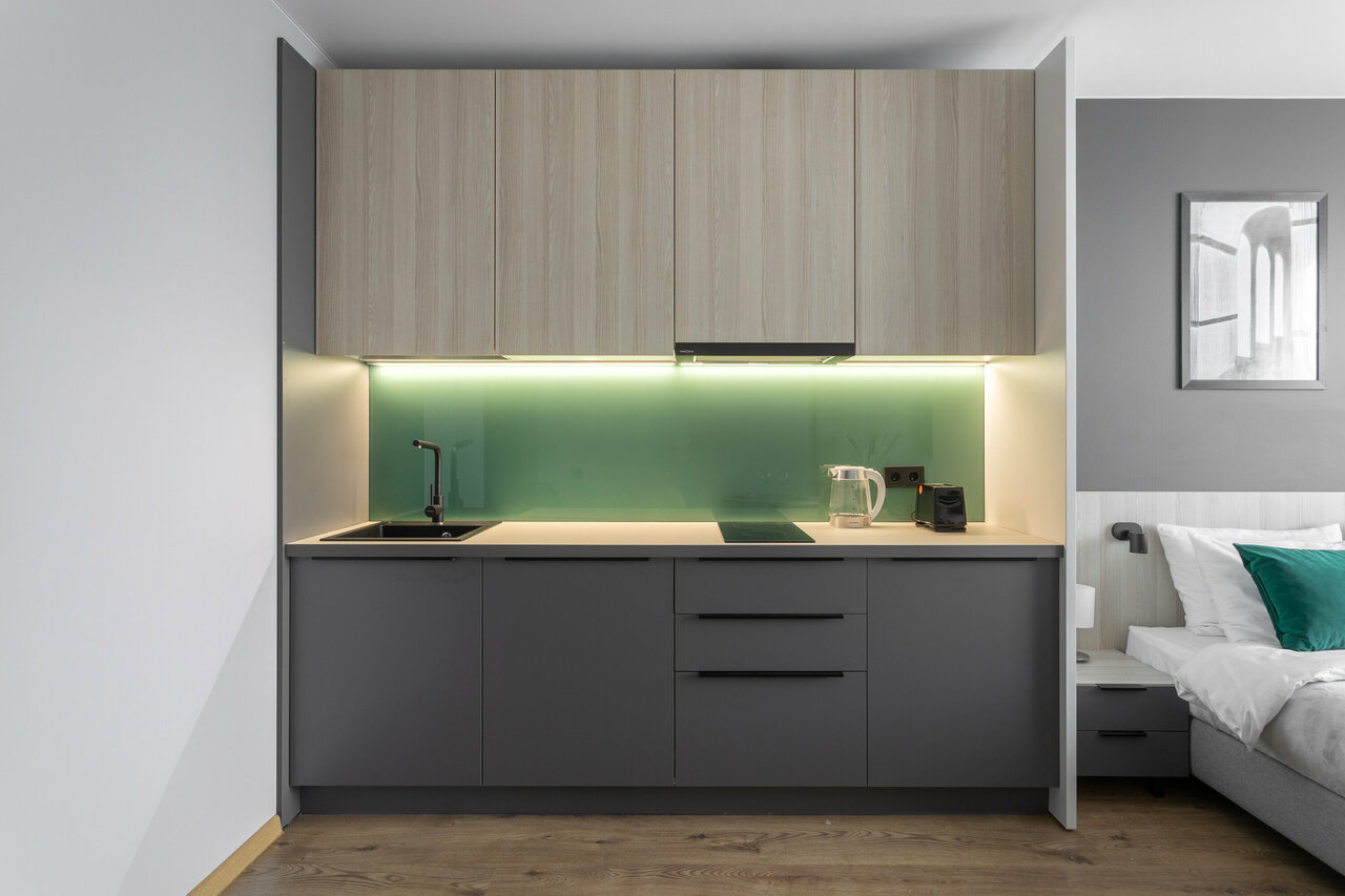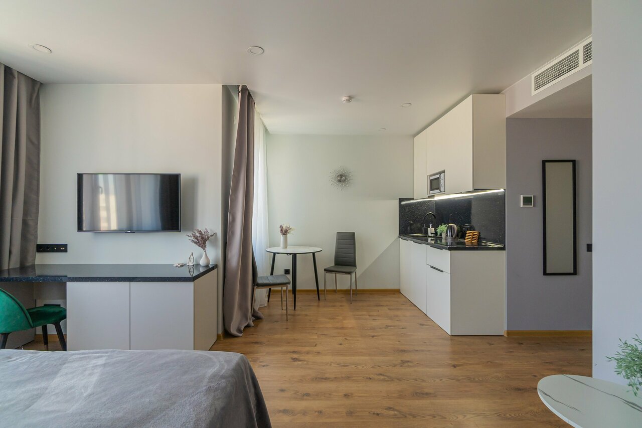 - Отличные апартаменты, всё очень понравилось.; Хорошая звукоизоляция.; Ресторан и кондитерская на первом этаже.; Высокое количество оргазмов.; Чайник с потрясающей подсветкой.