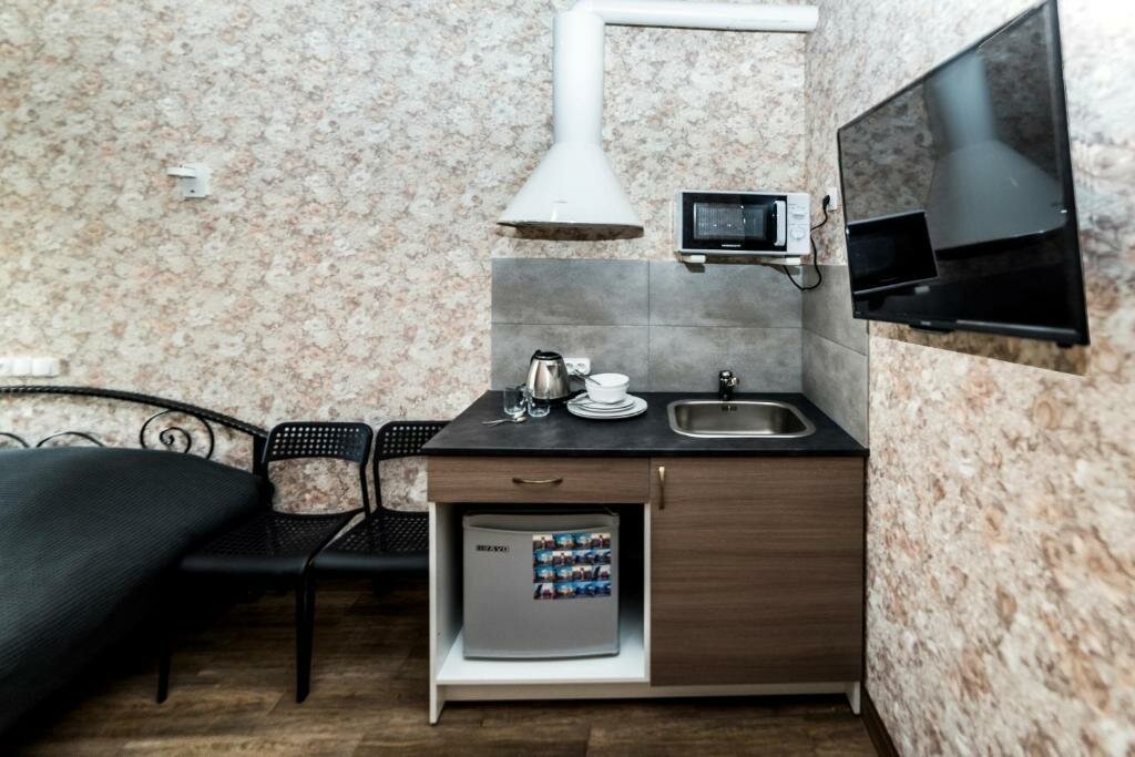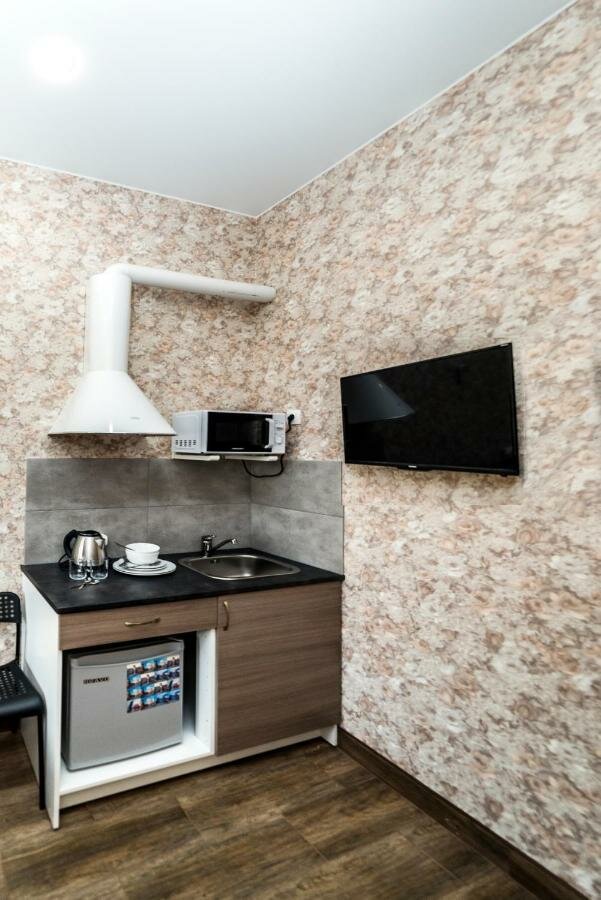 Неплохие, небольшие номера для ночевки, не далеко от метро, в пешой доступности продуктовый магазин, номера в стиле студии оборудованы мини кухней. Цена в целом завышена