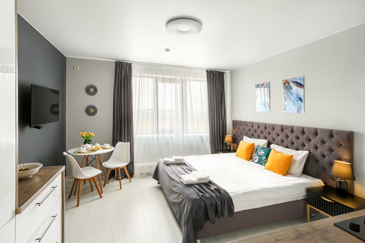 Остановились с девушкой в апартаментах 146. Во время бронирования общение проходило легко и непринужденно, владельцы всегда были на связи, что плюс. При бесконтактном заселении были высланы довольно подробные инструкции и трудностей не возникло. Сами апартаменты весьма удобные и уютные. Отличный вариант для проживания, будем возвращаться.