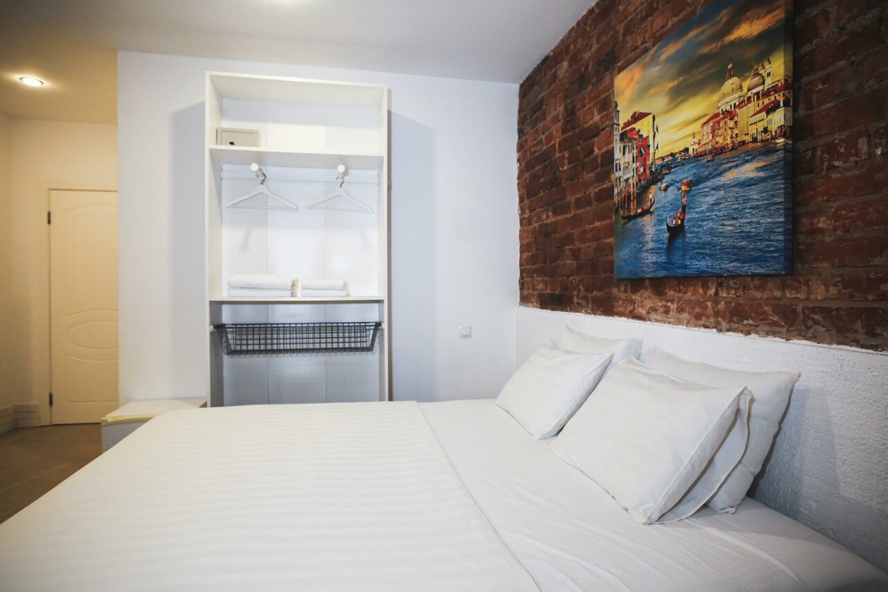 Плюсы: дешево, в центре, есть полотенца, тапочки, мыло и шампунь. Минусы: не нашел питьевой воды и очень неудобный матрас. Поэтому 4.