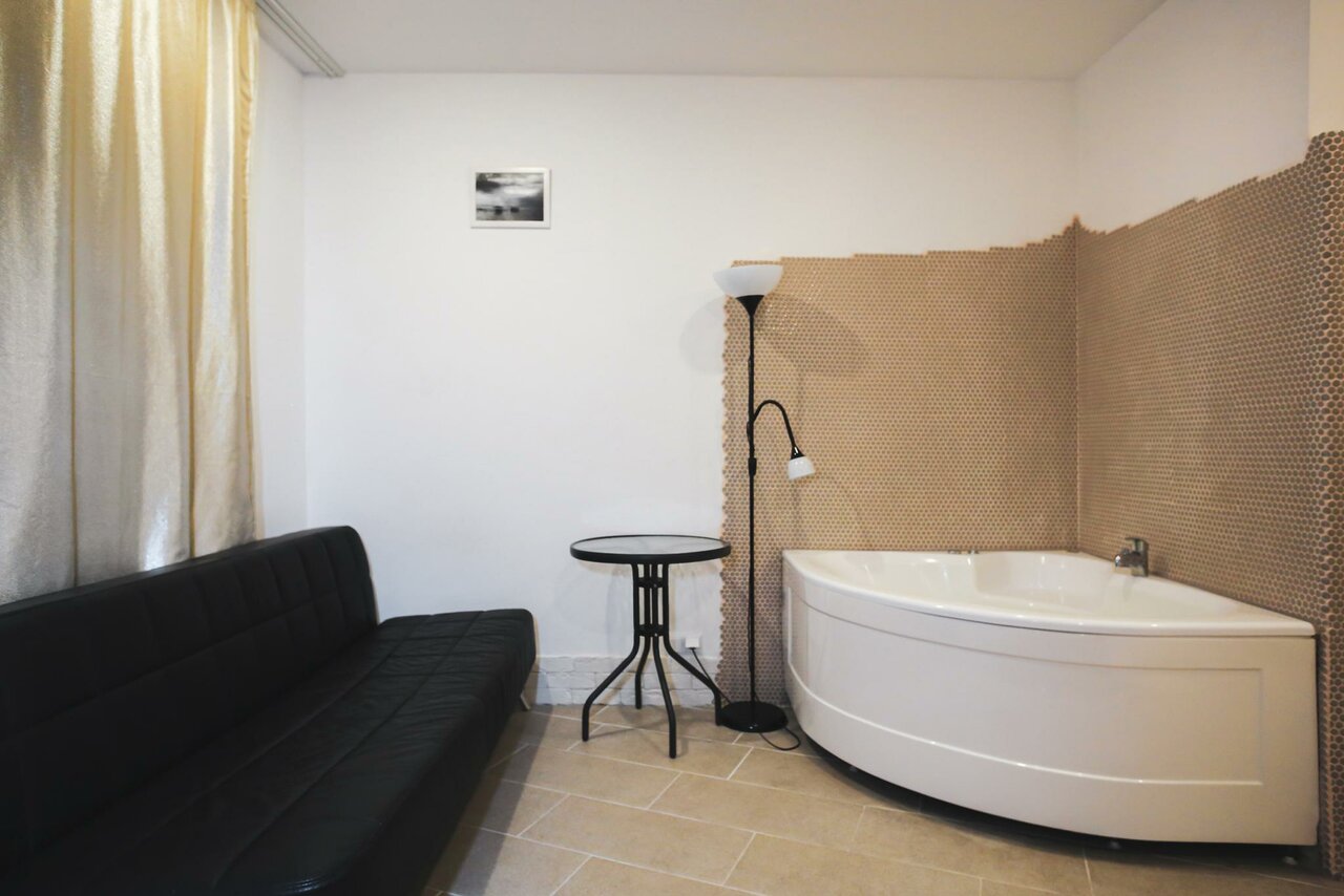 Ребятки как то дорого за данные комнаты, крутая локация, дом старый, не путайте с старинным. На фото все посимпатичнее. Персонал все хорошо. Но комнаты за данные деньги перебор