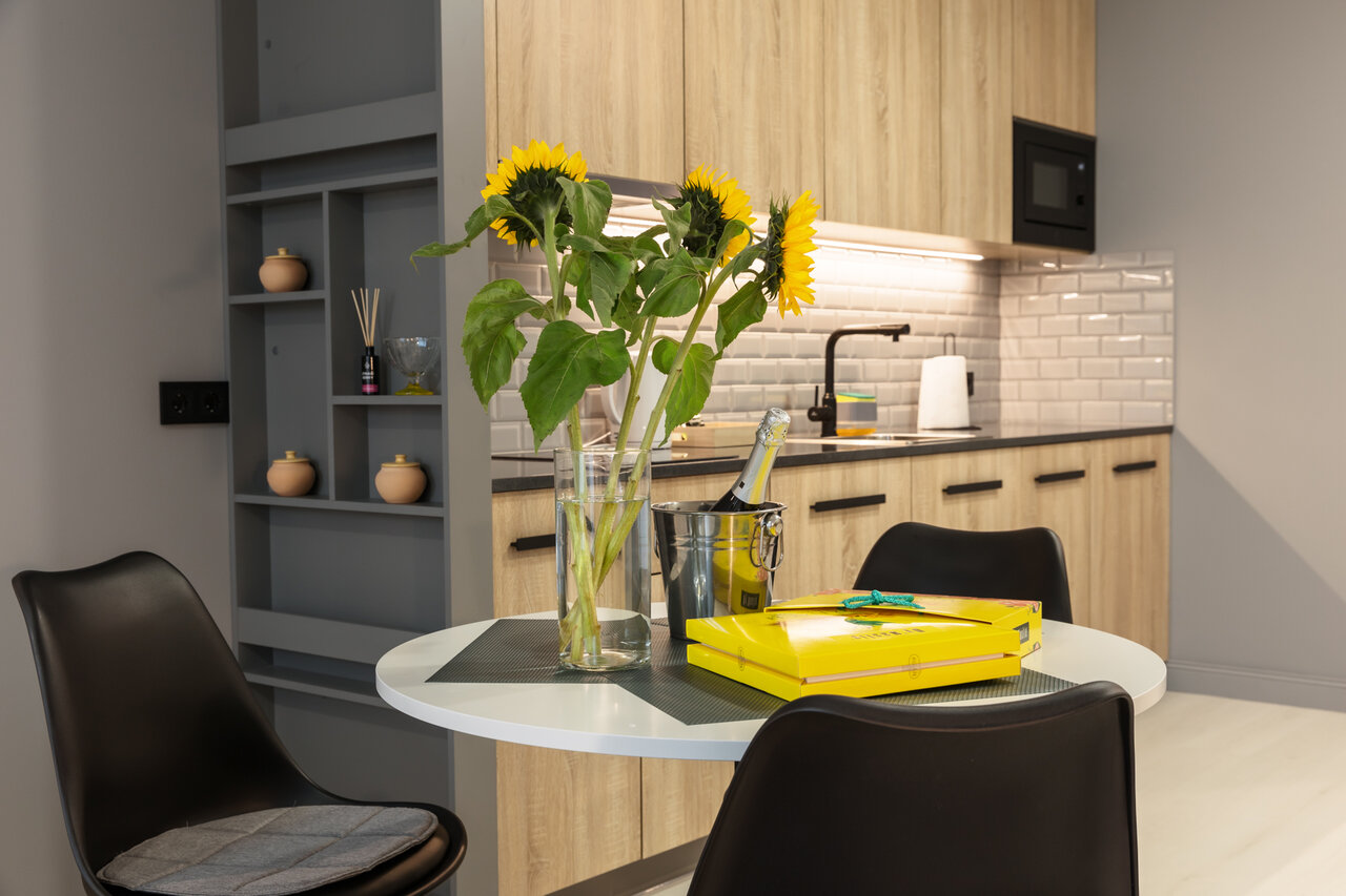 Прекрасный апарт-отель, удобное расположение. В номере всё, как и в описании. Чисто, уютно. Спасибо владельцу и обсуживающему персоналу!
