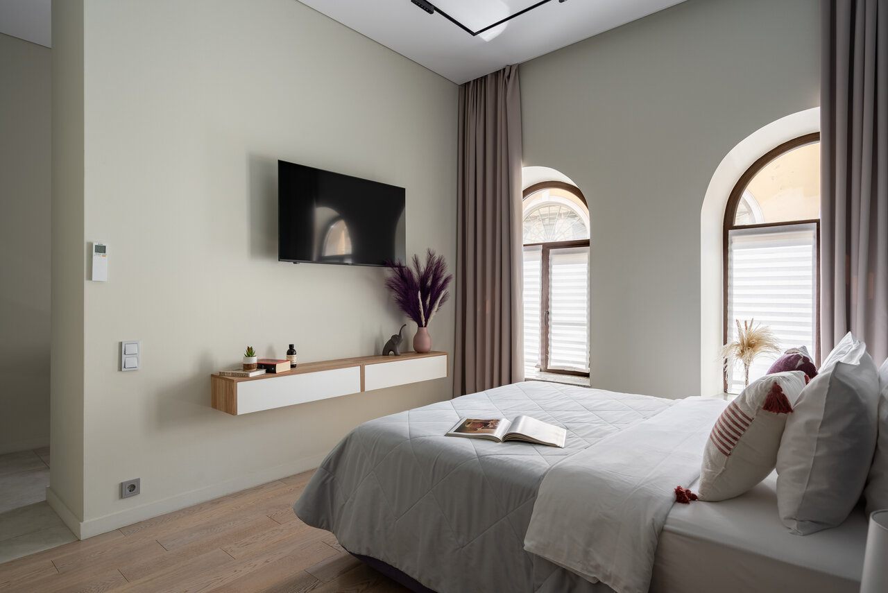 Просторные, новые, современные апартаменты в историческом здании. Все сделано со вкусом, любовью и для комфорта. Идеально чисто. Кровать огромная и с потрясающим матрасом. Диван раскладной и тоже большой и удобный. Квартира очень светлая, продумано все. Проигрыватель с винилами добавил шарма в наши вечера и утра. Мы с огромным удовольствием возвращались отдыхать в апарты каждый вечер. Спалось чудесно! Окна выходят в очень ухоженный симпатичный дворик. Было очень тихо, о соседях даже представления не имели) Расположение супер — на Васильевском острове у набережной. Пешком до Эрмитажа по мосту 10 минут. Ночью ходили к Дворцовому мосту посмотреть развод. И бонус — в соседней парадной музей-квартира Куинджи! Только покупать билеты надо заранее на сайте. В общем — кайф и восторг. Чат поддержки всегда на связи, любой вопрос решался ( будь то парковка или доп одеяло), было приятно ощущать заботу. Апартаменты однозначно рекомендуем!