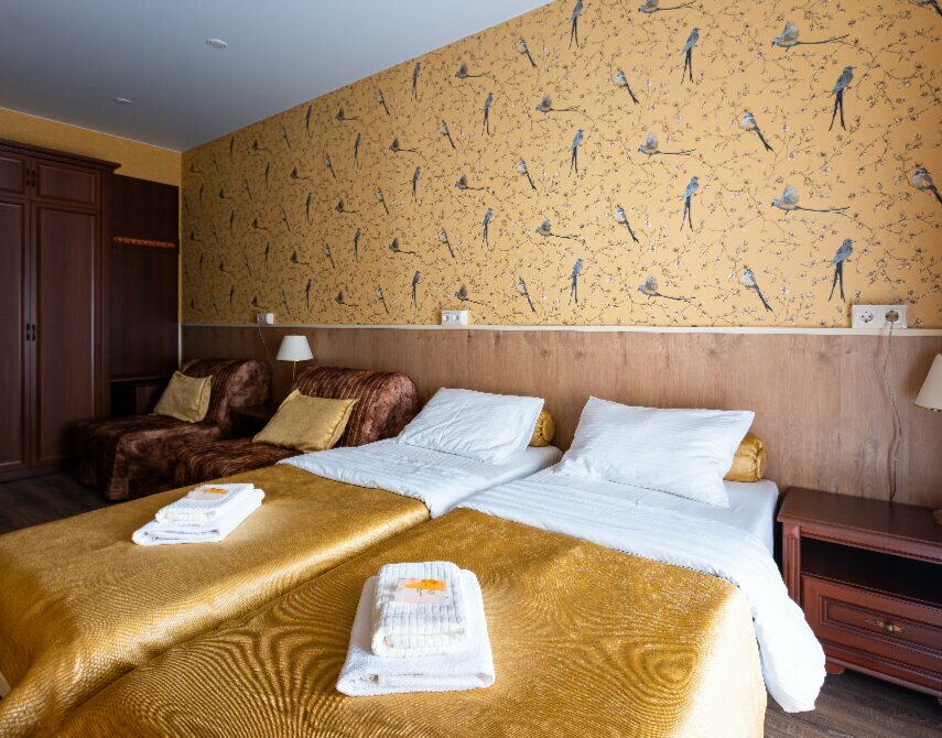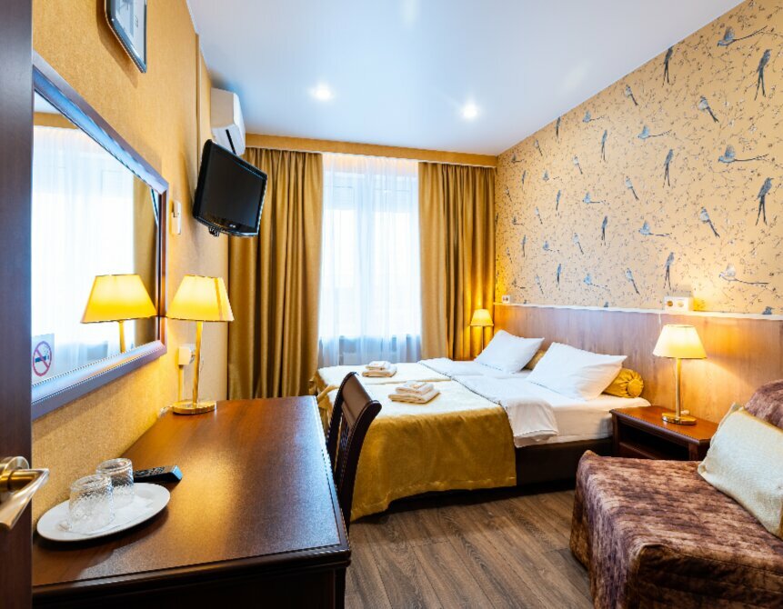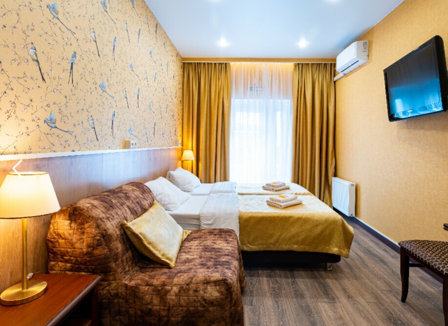 Мини кухня в номере, площадь 15 м², 2 кровать 80*200 см, душ, фен, ЖК-телевизор, бесплатный Wi-fi, кондиционер в номере. В отеле действует бесконтактное заселение по коду доступа в номер и с онлайн-регистрацией.