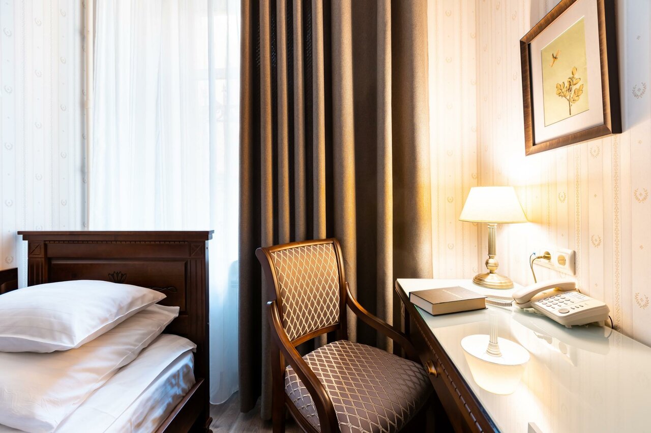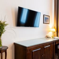 Уютные и самые комфортабельные номера категории Джуниор сьют. Площадь каждого номера 28 кв. м. Вид из окна — на пешеходную аллею или внутренний двор .В каждом номере:Одна большая кровать, одна односпальная кровать с матрацами класса люкс, письме...