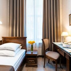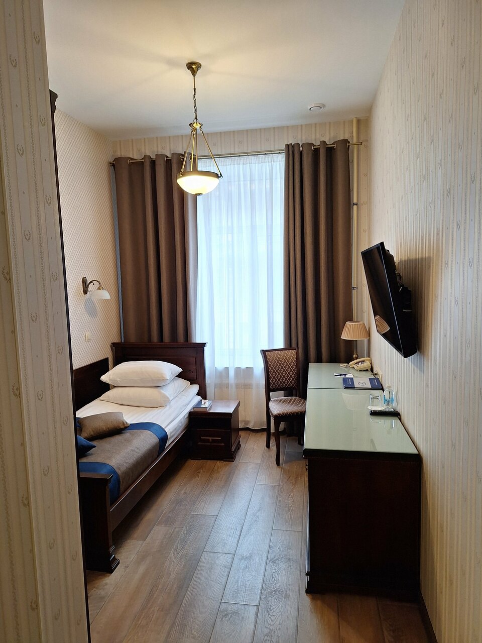 Очень понравился уютный номер на втором этаже с окнами во двор. Кондиционер, пол с подогревом, хороший телевизор, полный банный комплект (халат, тапочки, полотенца, шампунь и пр.), чайник, холодильник. Вкусные завтраки не только со шведским столом, но и с возможностью сделать персональный заказ. Внимательный персонал, хороший интерьер, шаговая доступность нескольких станций метро, Московского вокзала и Невского проспекта. Есть услуги прачечной, по просьбе предоставят утюг и доску. В-общем, этот отель и его сотрудники спасли наш отпуск (были вдвоем) и с самого утра создавали отличное настроение!