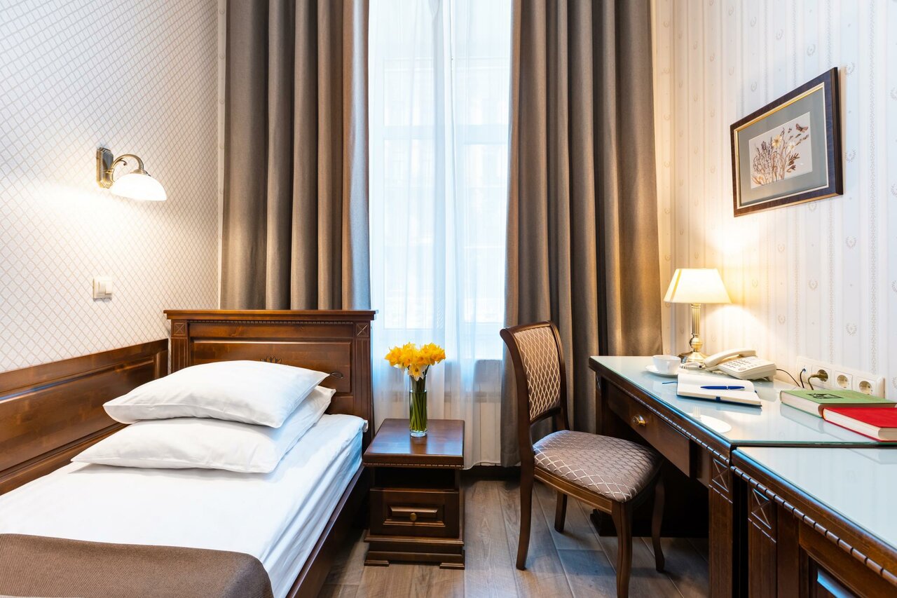 Отличное место почти в самом центре Санкт-Петербурга! Близко ко всем достопримечательностям, но не шемно, как на Невском. Прекрасное обслуживание, где персонал относится к вам как к старым и дорогим друзьям, с вниманием и заботой. В сетках такого нет, там проходимость не позволяет. А тут как дома. Потрясающие завтраки, спасибо шефу. Комфортные номера. И особым шиком является то, что в лобби отеля время от времени проходят культурные мероприятия: концерты, лекции, литературные вечера. Отель предоставляет гида, если у гостей есть желание более пристального знакомства с городом. Словом, одни плюсы. Минусов не обнаружил.
